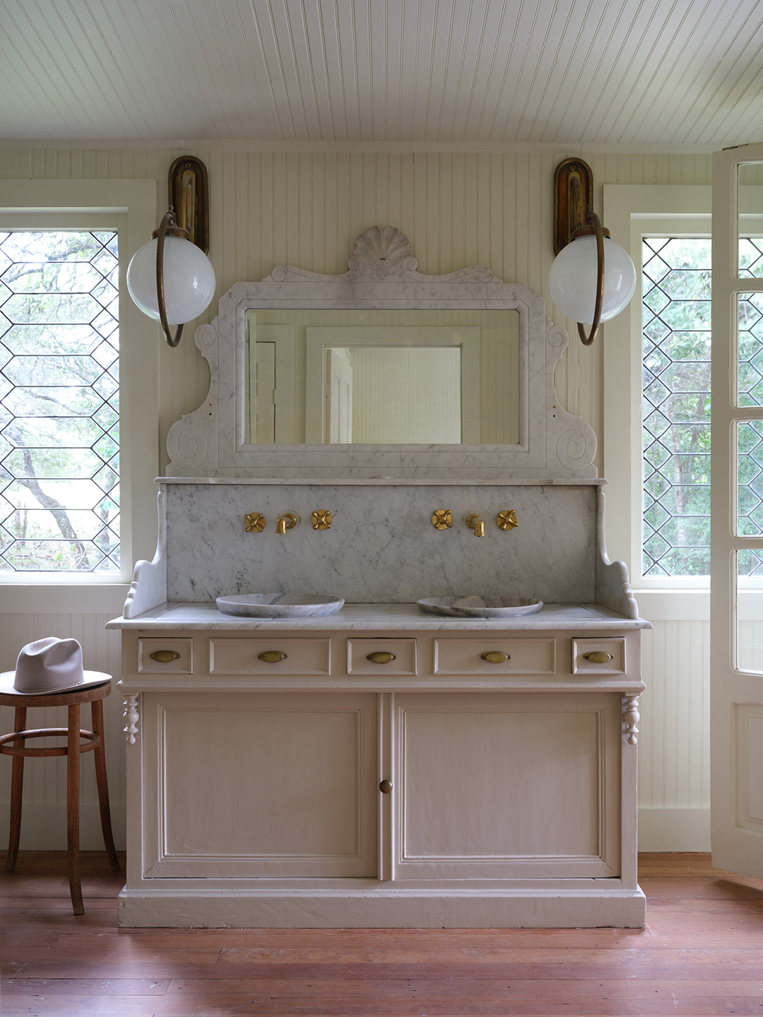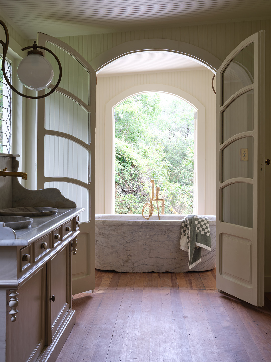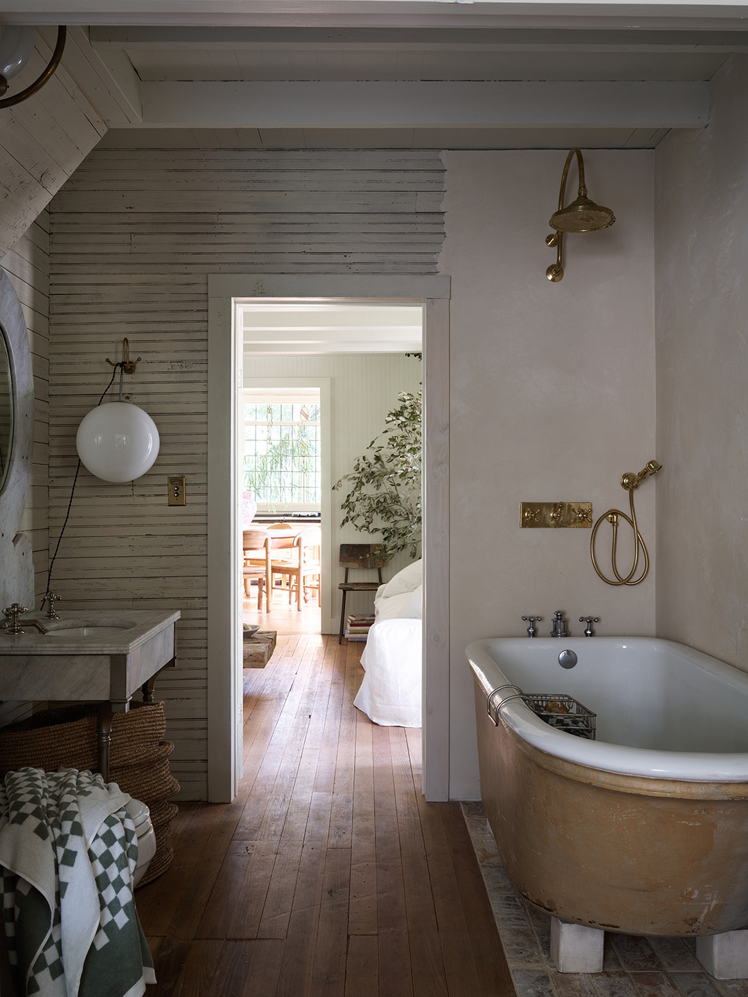 One thing led to another—Ford’s husband has a habit of looking up real estate wherever they go, then Mitchell tagged along to check out an 1880s farmhouse with them—and before they knew it, the HGTV alums were putting both their names on the mortgage. “We were walking through the house, and Leanne and I kept exchanging glances like, this is happening,” recalls Mitchell. Nerve-racking as it may be to buy a house with one of your friends—not to mention renovate—the duo had their shared love of vintage treasures and “doing things the wrong way” going for them. It also doesn’t hurt to have someone to lean on when things inevitably go over budget. “Everything felt half off,” Ford jokes. “One person buying a marble bathtub is bonkers, but two? It’s 50% off!”