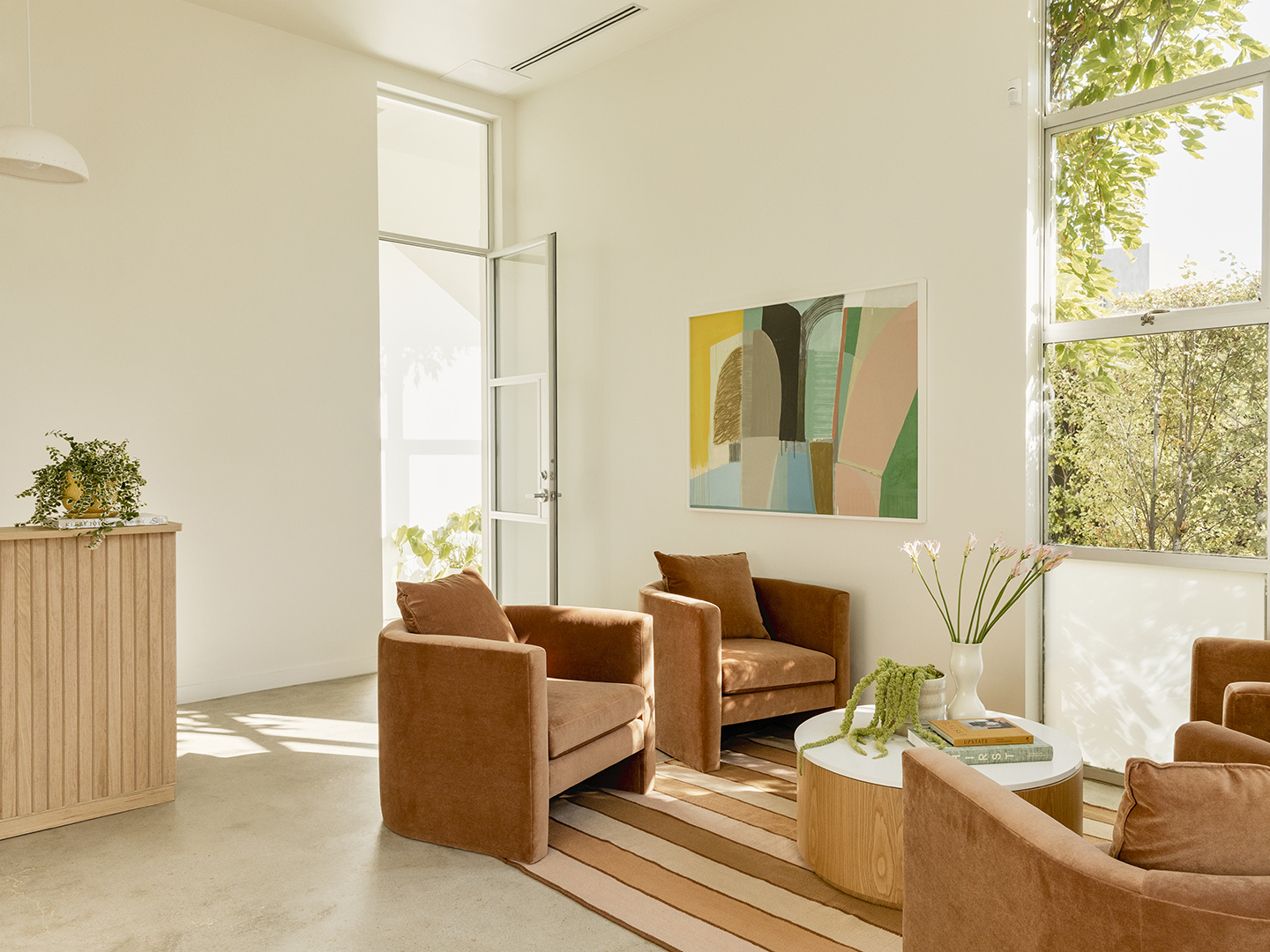 Still, the headquarters had to check a few key boxes, including privacy and safety. The Santa Monica property is practically its own small campus, consisting of a stand-alone 1930s Art Deco building. There’s also a courtyard for events and a small annex for private gatherings and meetings.