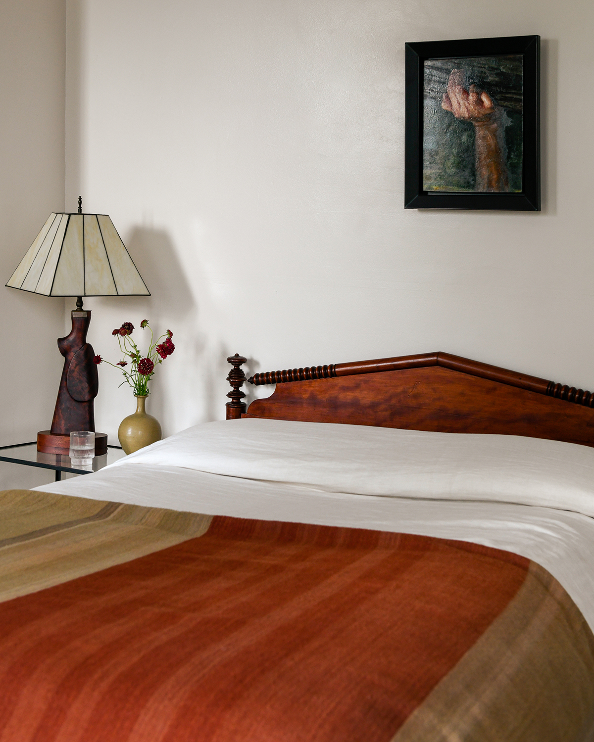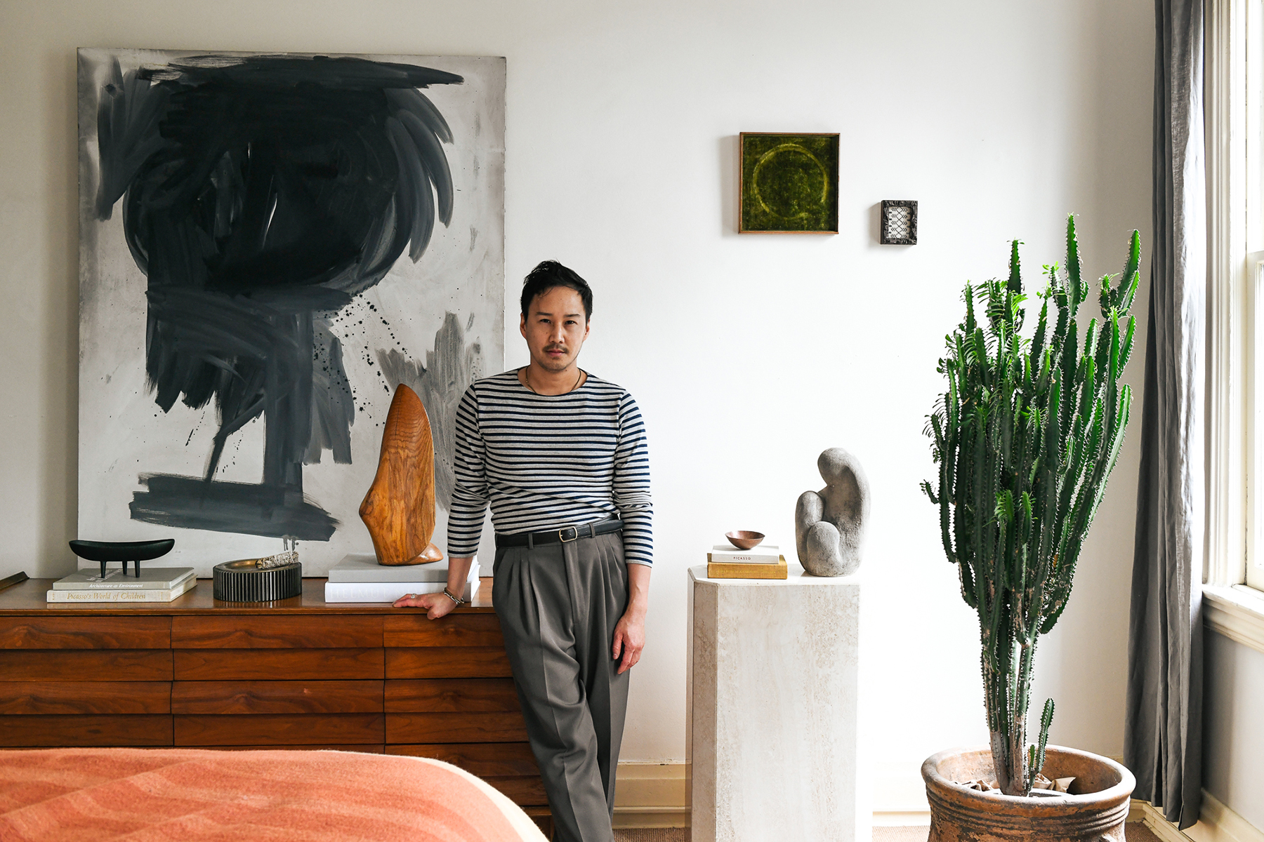 Not everything in the apartment is found—the bookshelves came from Room and Board, and his bedding is Morrow Soft Goods—but Yee says that filling his home with objects that tell a story is like peering into another person’s life and then making it a part of his own. Which is one of the reasons why he can’t stop swapping things in and out. Does he ever get misty-eyed over a piece he sold or gave away? “I take lots of photos of my space,” he says. “That way I can still get a sense of the nostalgia without having to own the piece. I’m not giving away the memory.”