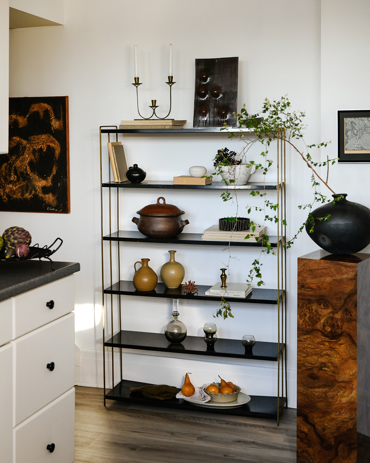 ”I switch it up often,” he says, noting that his kitchen table, bedroom mantel, and dresser get the most styling change-ups. “Mixing it up makes it fun for me, and [I like] taking risks and styling objects that are sometimes weird just because. After all, what’s the point of design if you aren’t having fun, right?”