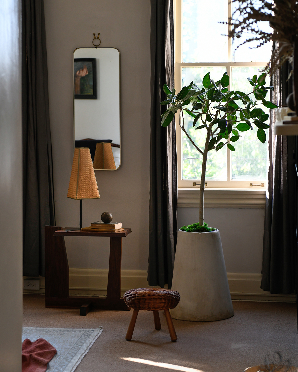 No, he does not live in an evil lair, but a virtuous one-bedroom apartment housed in a former dance studio that he’s filled with his vintage finds. Nothing is permanent, even the furniture, which he rotates in and out on a constant basis. His style has even caught the eye of Leanne Ford, who once came to shop at a pop-up he hosted, and now she reaches out to him when she’s working on projects.