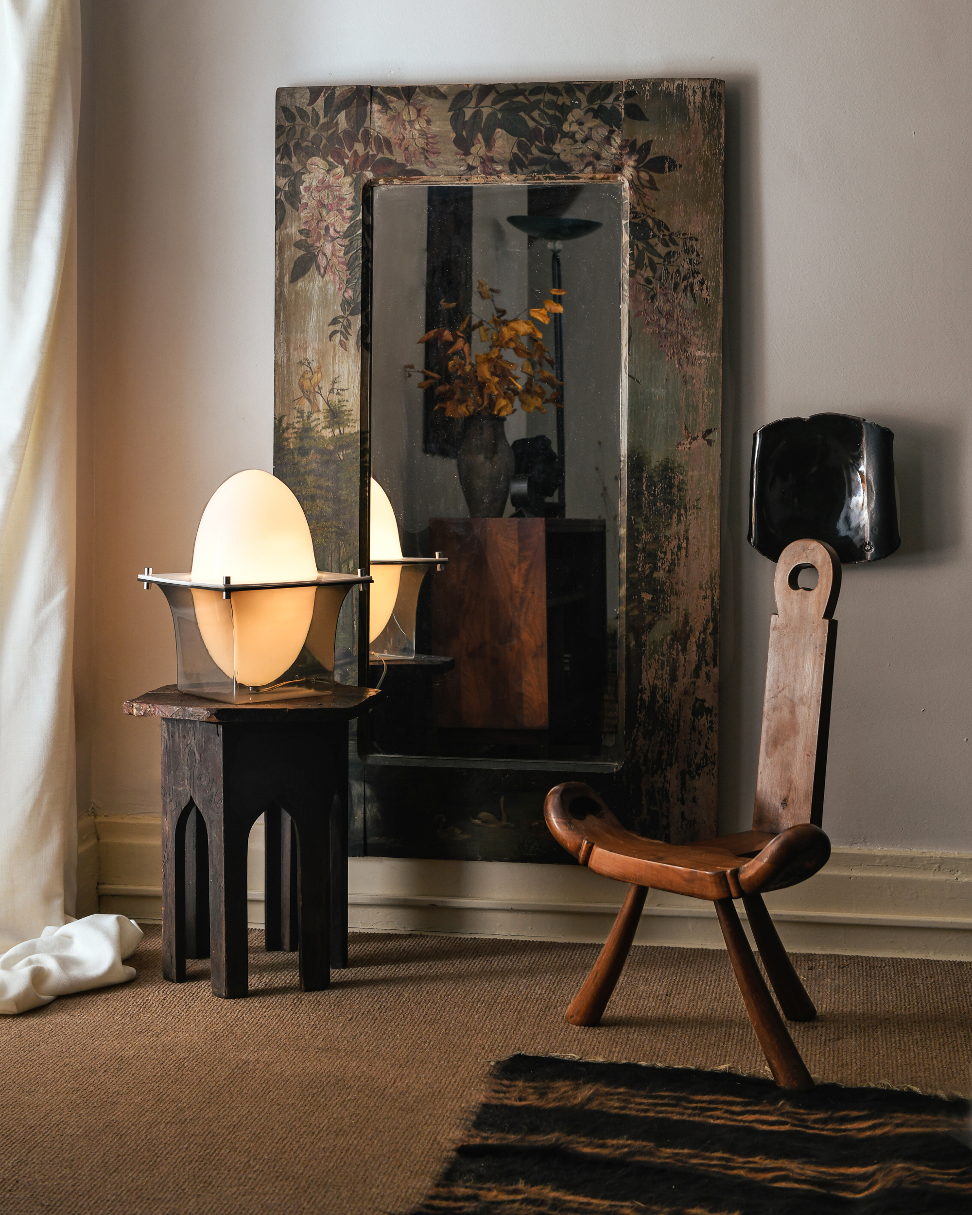 And for now, at least, his apartment is settled, and every object, from the 1970s egg lamp to the South American headdress above his sofa, is in its rightful place. That is, until tomorrow.