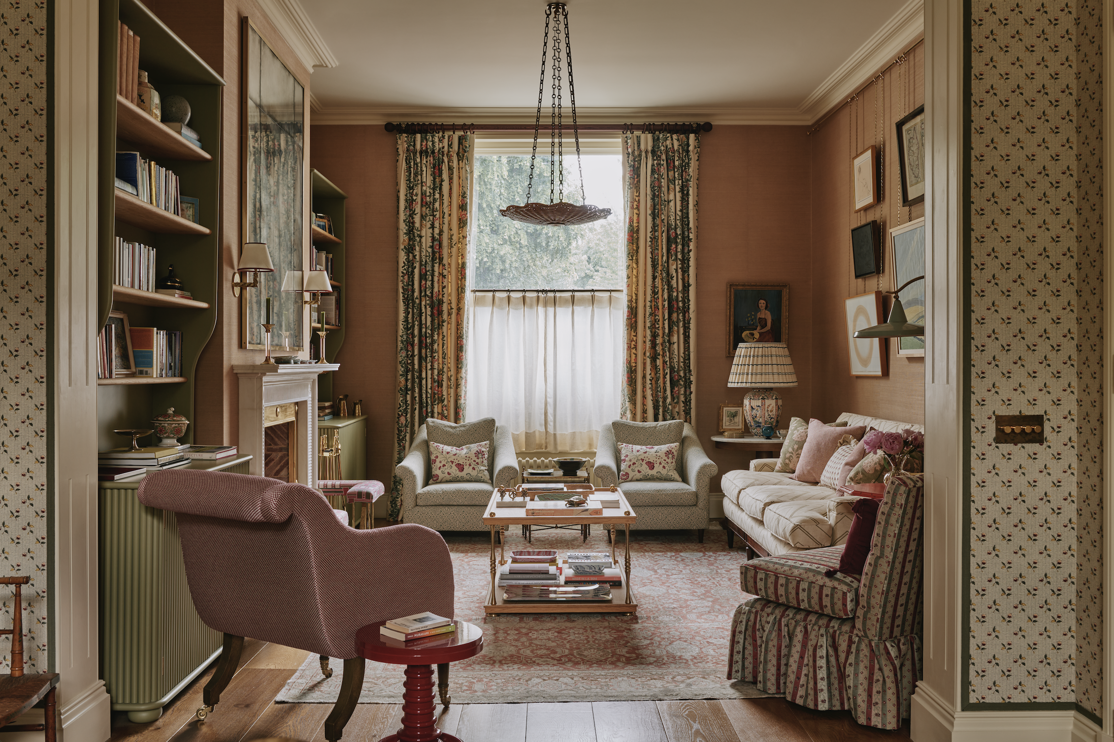 We’ve heard plenty of designers talk about the importance of balancing old and new, but sometimes that can be hard to picture. When we need a strong visual, we turn to the work of London-based firm Salvesen Graham. Its founders, Nicole Salvesen and Mary Graham, are part of a new wave of pros helping to push the boundaries of English style: They’ve created a bar skirt out of colorful flame stitch fabric, used rope as a staircase railing, and clad the walls of a formal lounge in green velvet. Fittingly, they titled their debut book A New English Style. Out May 6 in the U.S., its pages recap some of the duo’s most memorable projects, from a historic Georgian estate to a Craftsman-style home in Colorado. In this excerpt, author David Nicholls take us on a tour of a playful Chelsea house with no shortage of floral wallpaper and bed canopies.
