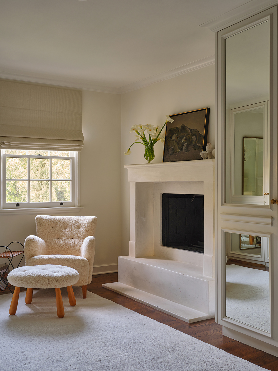 When Darden’s family moved in, it seemed as though every room was a different color. “That’s typical of older Spanish homes, but I wanted to use a neutral palette to make everything feel less cluttered,” she says. She partnered with designer Mike Moser to find creamy paints that would complement warm woods, creating a simple-yet-stunning backdrop for windows filled with greenery to pop.