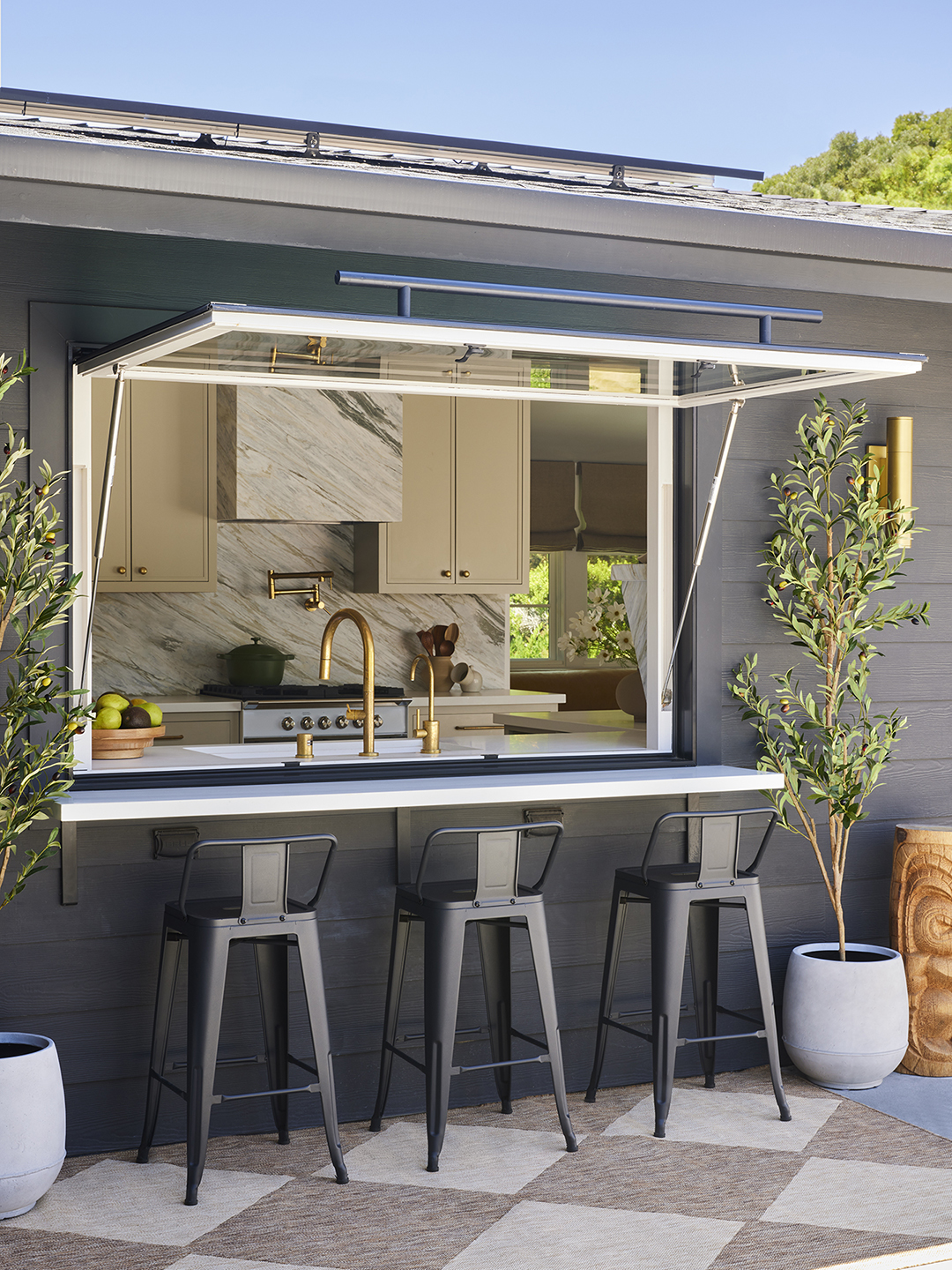 It’s little luxuries like these that remind her of why she made her major career shift in the first place. “I’ve never been able to really live somewhere as nice as the homes I’ve designed [for clients] before,” she says. “This is the first time we’re able to experience some of this stuff.” The kitchen sink’s hot water filter is a beloved convenience, but nothing beats the crushed-ice machine next to the tiki beverage bar.