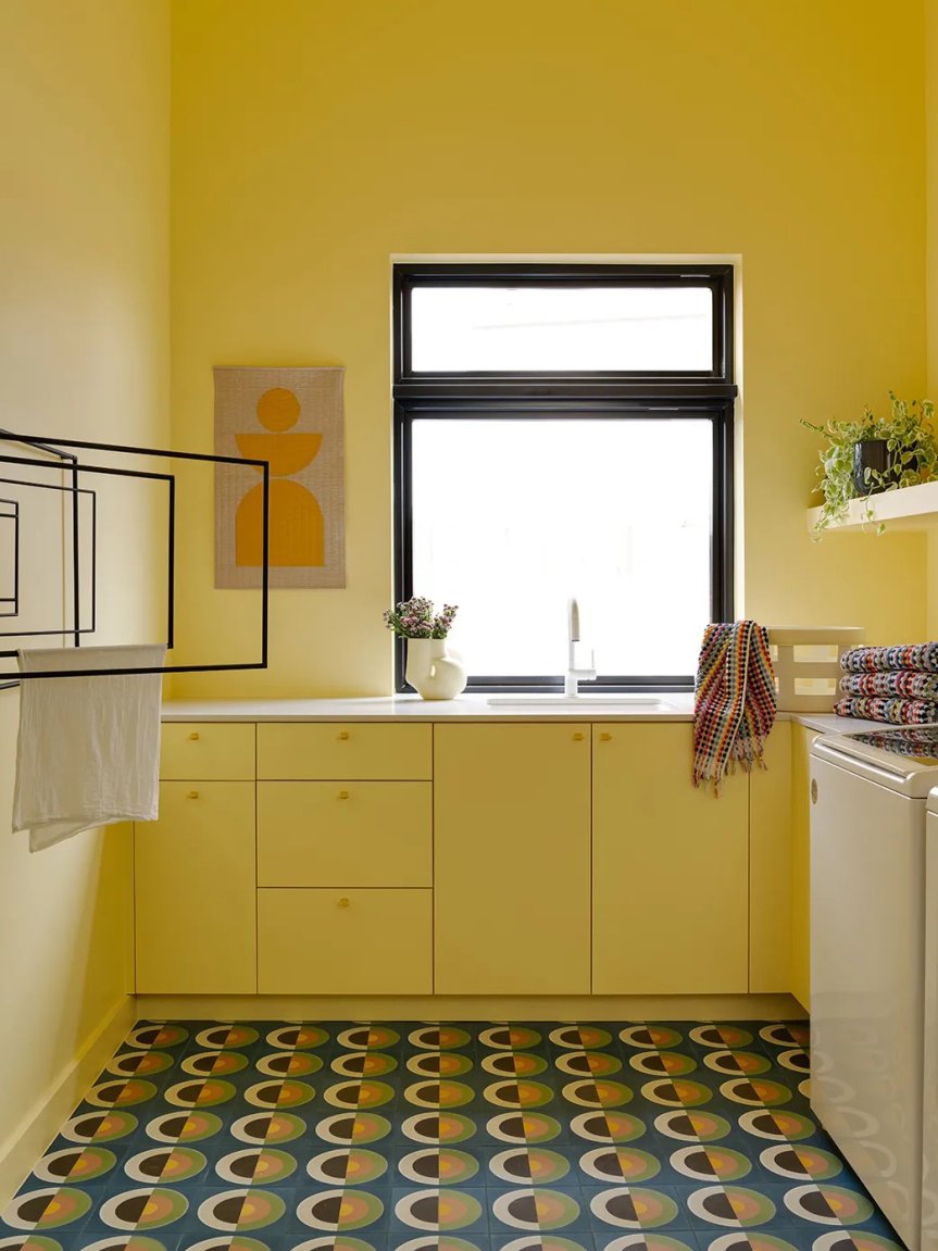 In a recent tour of designer Maggie Glendenning’s Utah home, we couldn’t help but notice a wall-mounted system in her sunny yellow laundry room. “The drying rack is from Europe,” she shared with us. “I was trying to find a cute one, because I don’t like to put things on hangers and I didn’t want a [ceiling] hanging rack.”