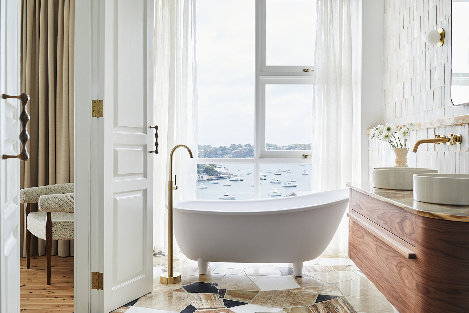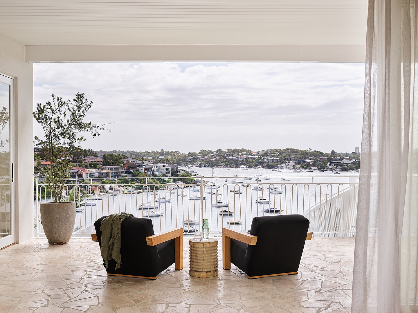 On any given day when the sun is shining in Sydney, Jones and her two kids will head down to the beach or take a dip in the pool, later ending the evening on the terrace. “I have always been drawn to living by the water. My first two apartments were in coastal suburbs and I loved it,” she shares. “It’s very peaceful just sitting on the balcony watching the boats bobbing on the bay.” The view is so good it even turns her head away from the kitchen island.