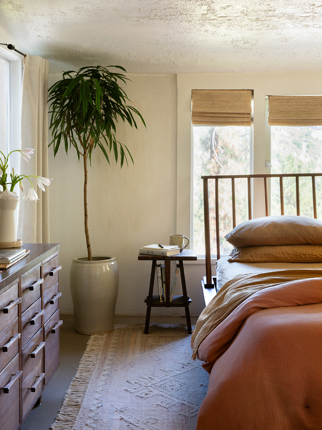 Sheets and Duvet, Quince; Planter, Patrick Johnston Ceramics; Rug, West Elm.