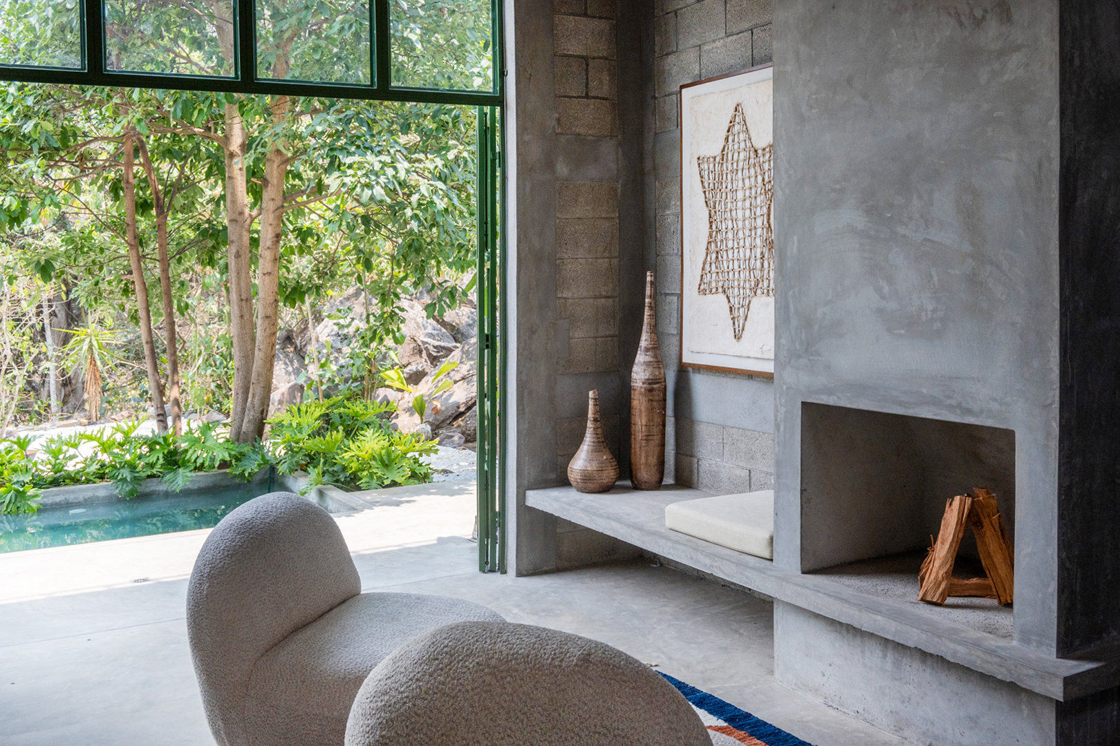 After the home was completed, next came the most important part: Herrera worked with a Mayan shaman and family friend to bless the structure. “The volcanoes have life, so out of respect, you ask permission to be there and to modify the land and to bless your existence going forward,” she explains. “Everything in this house is to honor local traditions, from the materials to the spiritual practice.”