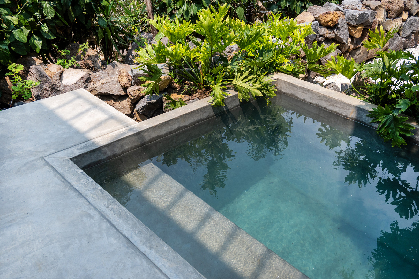 To begin, Herrera used the software she was most familiar with as a graphic designer—Adobe Illustrator—to make the house plans, then had an architect review them before breaking ground. For construction, she leaned on her mother, who lives in the area and knows plumbers and electricians, and a local pro contractor, Alfredo Quiche, who brought in experienced local bricklayers. “Electricity is not easily available, so the construction of this home was done without any power tools,” says Herrera. Plus Lake Atitlan is surrounded by volcanoes, so digging isn’t easy work. “It was incredible to watch how efficiently the construction team broke through layers of volcanic rocks by hand to lay the foundation of the house,” she notes.