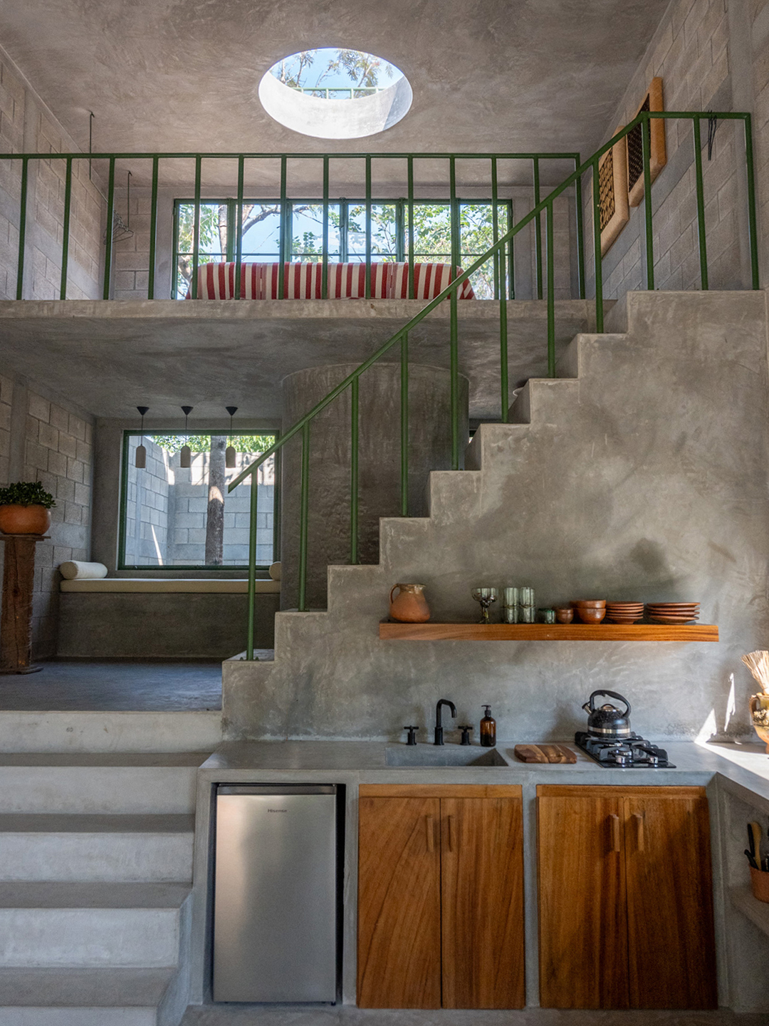 “I have so much respect for architecture, so in many ways I thought I had no business doing this,” recalls Herrera. But taking inspiration from the area’s traditional building techniques inspired her. “The construction style of the small Mayan villages around the lake is simple, functional, and of another time,” she says. Think: concrete blocks and metal doors. The approach helped make the construction affordable and the look completely trendproof. “I was able to root [the design] in something that felt more important than aesthetics,” says Herrera.
