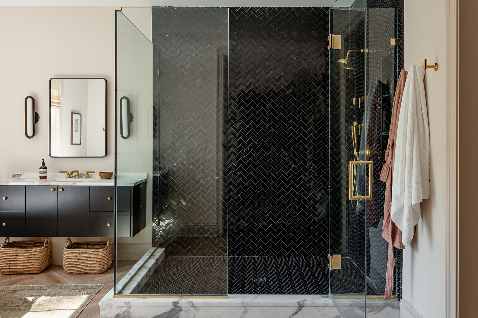 At first, the clients were hesitant to do a black kitchen. They were worried it would be too dark, but we were able to explain that cabinets would connect the space to the living room, almost as its inverse, given the living room has white walls and black trim.