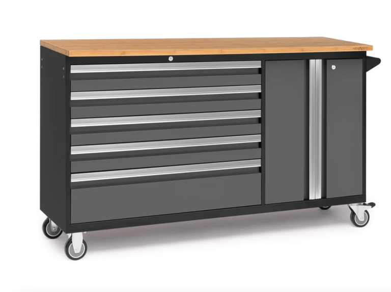 The two pieces I would be most interested in buying for garage organization are the Pro Series 42-inch multiuse locker (you get shelving that you can adjust and add bins to the shelves) and the Bold Series Project Centre, which has a lot of drawers for small hand tools and also gives a working top for those weekend projects. —Michele Vig, founder, Neat Little Nest