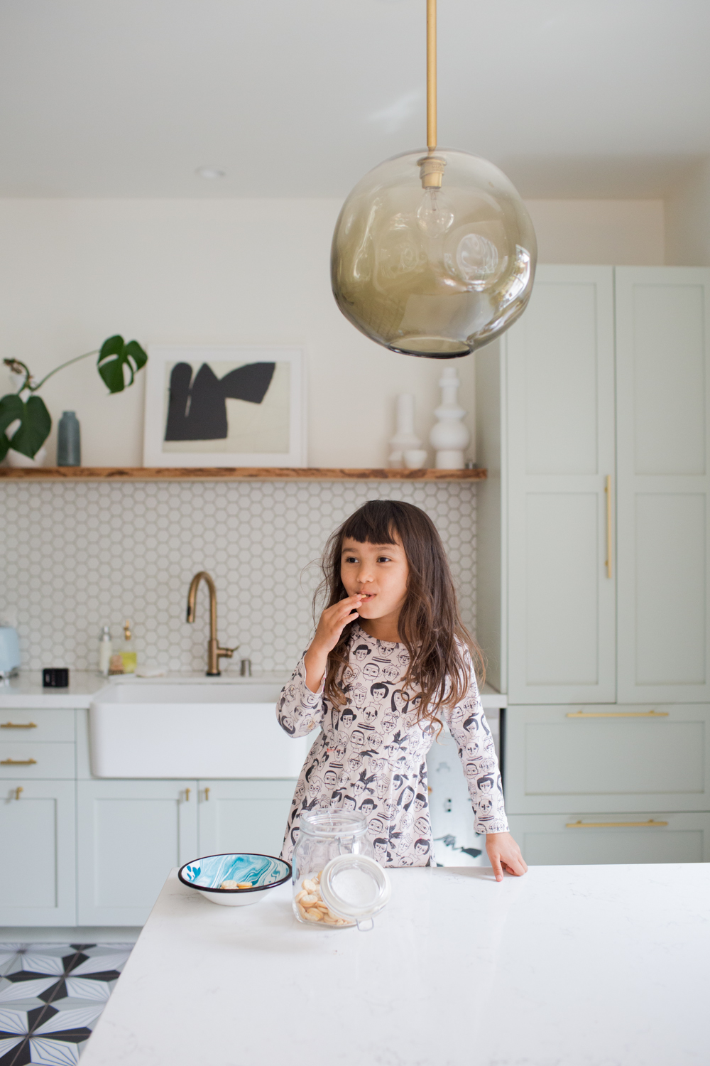 Organizing with kids in mind is important ,because they use the space just as much as we do. My daughter’s snacks, tableware, and crafts are now at her level in drawers in the kitchen and dining room. Prior to this, her stuff was mixed in with ours, out of reach—chaotic when we’re trying to get things done. This new setup allows her to get her things on her own, making her feel superproud and independent. It’s not just about corralling their stuff somewhere (although that helps!), it’s about allowing my kids to take ownership and be participatory. We’re skill building here!