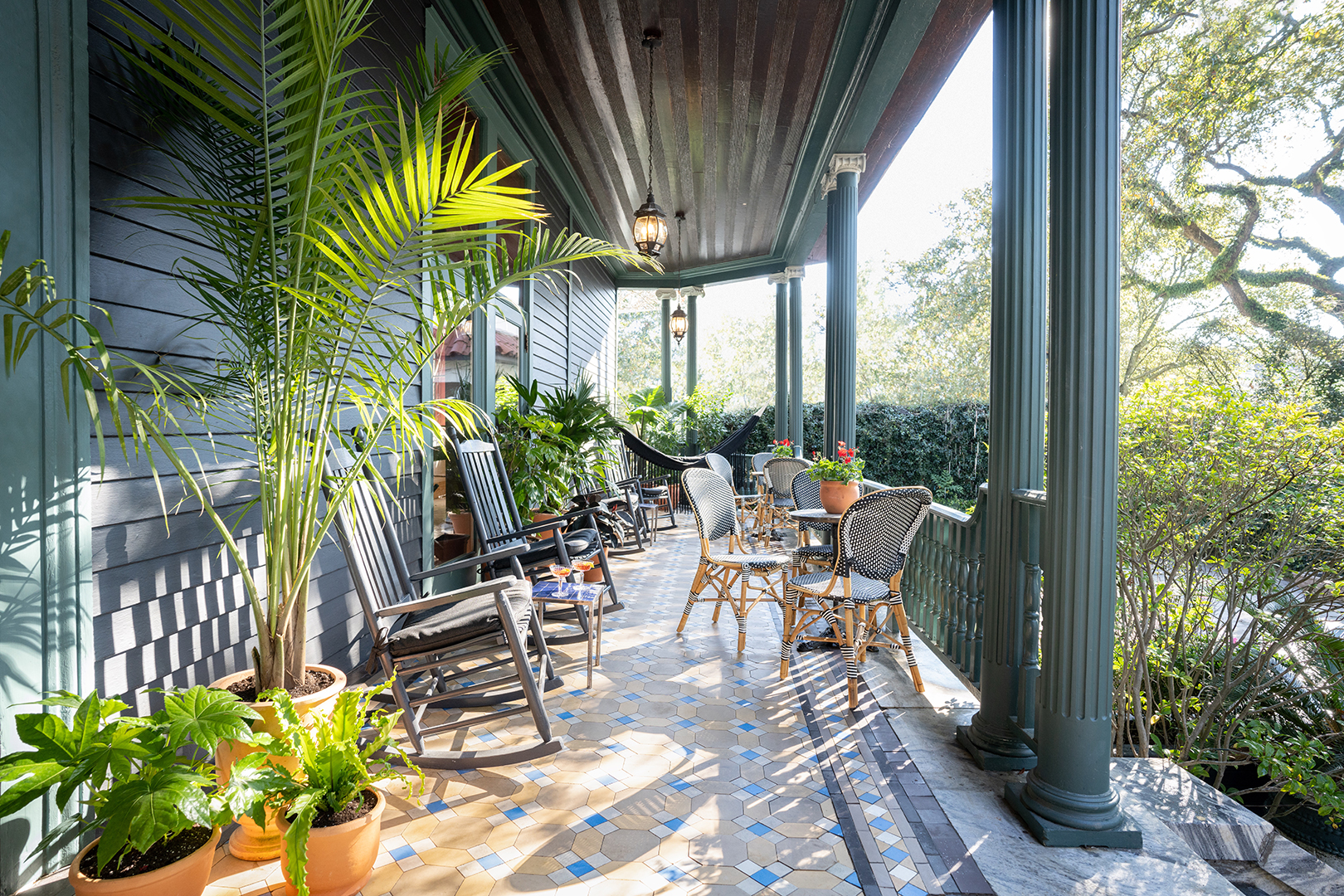 You know you’re in the South when you’re being waved onto a sprawling front porch with a cold drink. That’s what makes this teal-on-teal Victorian really feel like a home away from home. And with only 14 beds, don’t be surprised when the staff greets you by name as you make your way past the inky walls and alligator-clad carpet up to your room. Inside each spacious suite, you’ll find an eclectic mix of local art and comfy furniture, be it a daybed nestled under a bay window or a rocking chair next to the minibar, all decorated and curated by NOLA native Sara Ruffin Costello. Once you’ve settled into your room, drop a Fats Domino or Louis Armstrong album on the turntable courtesy of nearby spin shop Peaches Records and unwind in one of the handwoven robes designed by local artisan Lekha. Then take a look around. You might have scored one of the rooms with the most delightful amenity of all: an armoire that opens up to either a hidden bathroom or a sunny nook. $$$