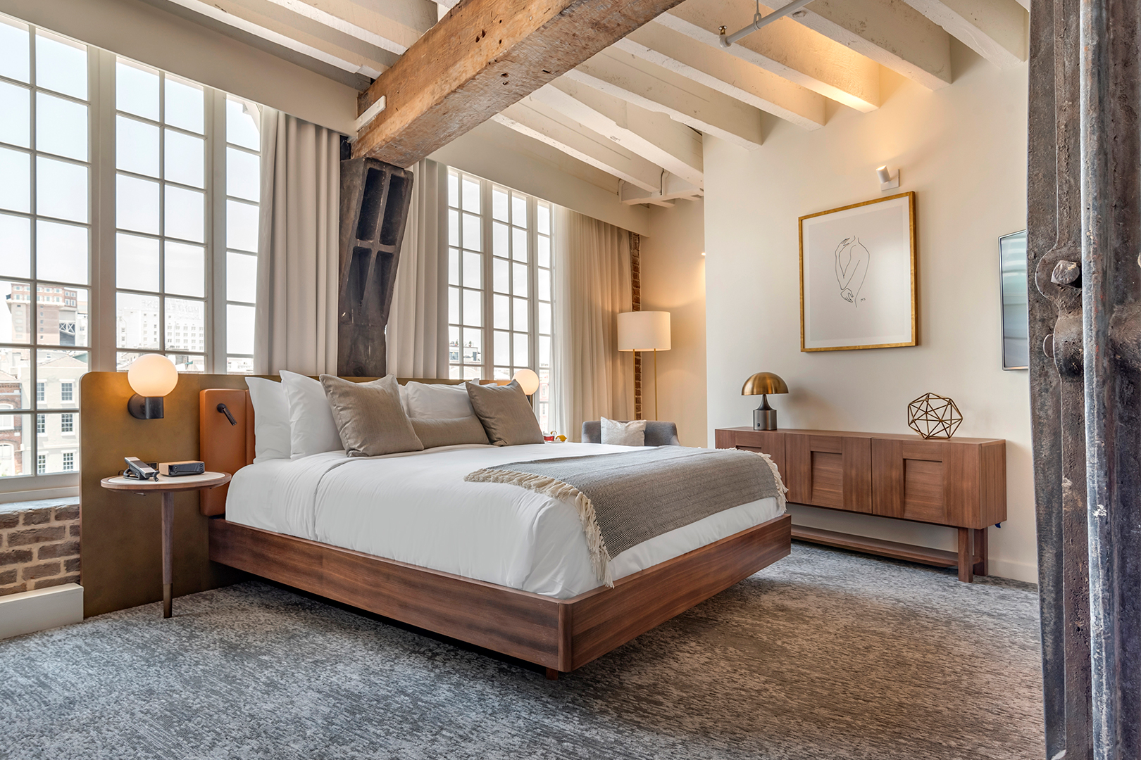 As the French Quarter’s first new hotel in more than 50 years, One11 adds a refreshing modernity to the historic district while still keeping it real. Located at 111 Iberville, the brand’s identity was born from its past life as the Louisiana Sugar Refining Company, and the aesthetic is decidedly industrial because of it. Relics of the original structure, such as steel and wood beams, cut through hallways and cross the ceilings in the guest rooms. A neutral palette, crisp white linens, and warm lighting soften up the warehouse vibes, and from the roof deck you can catch panoramic views of the Vieux Carré and Mississippi River. $$$