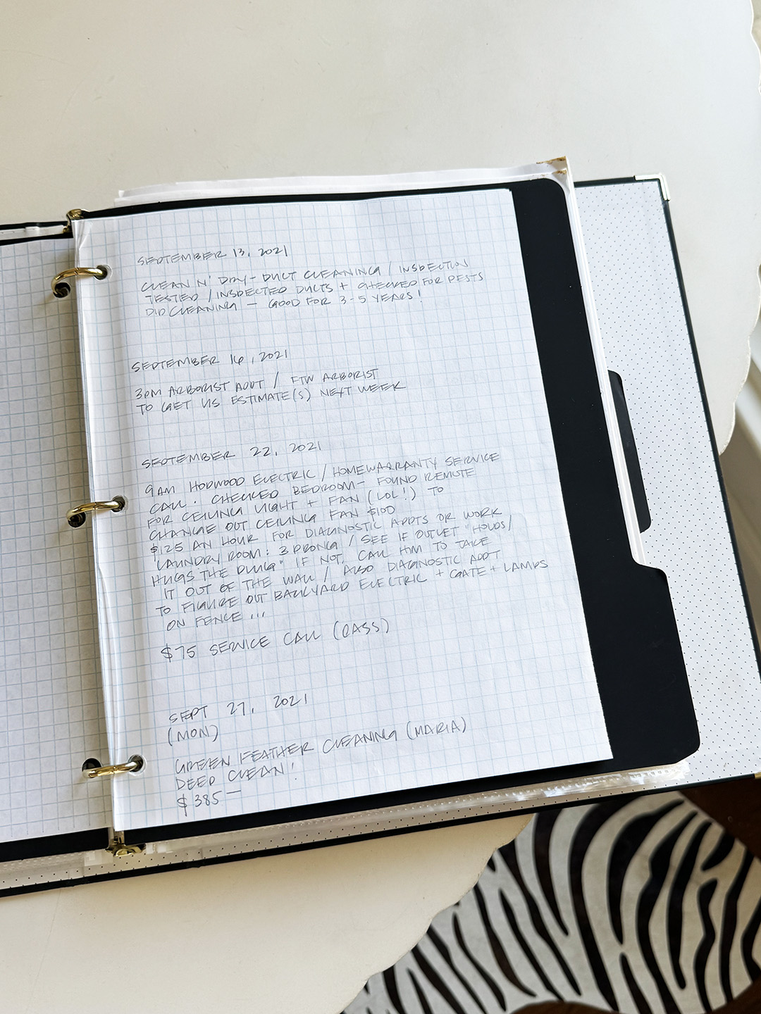 Iwersen emphasizes the importance of including your information in chronological order—your house book should read like, well, a book. If a stranger picks it up, will they be able to understand everything you’ve done as they flip through from start to finish?