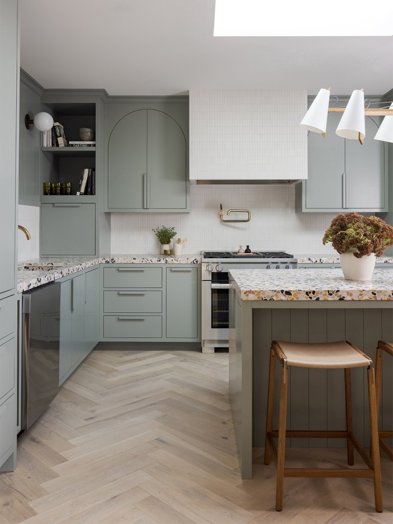 It’s not totally shocking that butcher block would top the list. It’s a durable surface that doesn’t require a ton of maintenance (though you should condition it regularly, as the wood can dry over time), and it’s much less expensive than stone, especially marble. Plus, if you follow Jessica Maré of Renovate108’s lead and avoid chopping on it directly (she reserves a few cutting boards for that), it will stay in tip-top shape even longer. Don’t have the farmhouse aesthetic to make it work? As you can see here, you don’t need one—the wood adds warmth to almost any space, no matter your style.