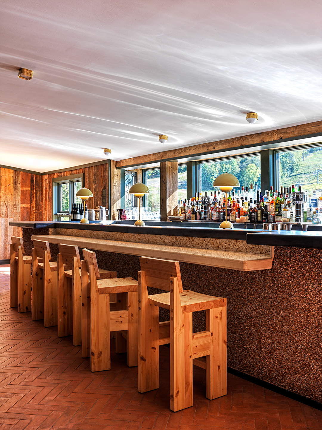 To capture the essence of mountain, ski, and village cultures across the globe—from Japan’s Hokkaido hot springs to New England’s slopes—Daye embellished the getaway with conical Noguchi lanterns, floral fabric by Austrian-Swiss designer Josef Frank, and locally crafted wood tables. “Mixing styles or influences from around the world is a delicate balance and can come out clumsy,” says Daye. Pulling references from completely different environments ensures it doesn’t feel one-note.