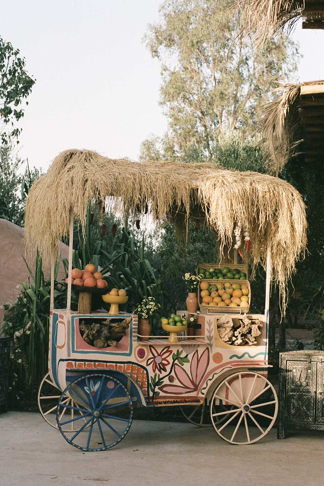 Rosena: For Farasha Farmhouse, we mixed our two design-style loves: modern Moroccan with laid-back Balearic. (We live between Marrakech and Ibiza, so both aesthetics have heavily influenced the farmhouse.) We worked with Ibiza-based designer Carmen Straatsma of Studio C to help us meld the two looks. Our local community and friendship group also had a large part in the design, from the carpet collection that we sourced from Beni Rugs to our art collection from Amine El Gotaibi to our own carriage juice bar from LRNCE.