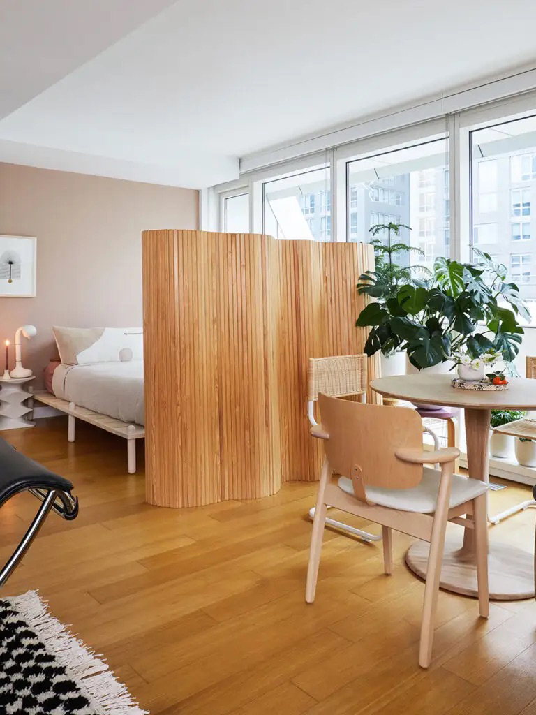 Room dividers have slid out of college dorm room territory and right into the sophisticated apartment you quietly covet on Instagram. If you’re downsizing to a studio, you’ll want to section off your space into different “rooms” if you can: a place to dine, a spot to lounge, and an area to sleep. One easy way to do that is to find a sculptural screen that won’t steal from a room’s footprint. Take notes from this 260-square-foot (!) studio in New York City.