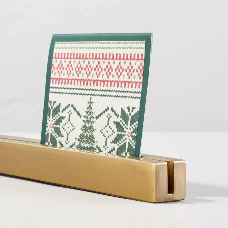 Gather all of your family’s holiday letters and photos into this sleek metal stand before everyone shows up for the big dinner. If you must show off your third cousin’s new baby to avoid a feud, you may as well give it a little pizzazz.