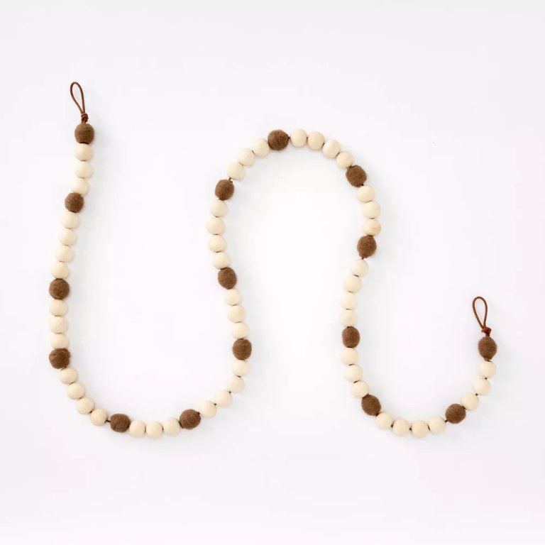Trade out the messy tinsel for this beaded garland, which will add a dose of warmth to your greenery with its light wood construction. Psst: It also has hooks on each end to make it just as easy to hang from a mantel.