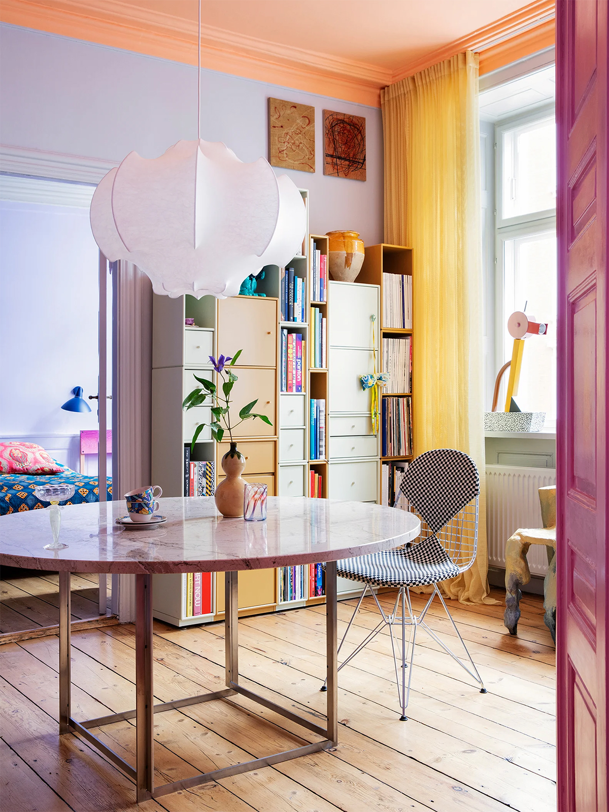 The beauty of having more space to spread out is you can go wild with paint. Céline Hallas reminded us of this with her Technicolor Copenhagen home: You can have a bubblegum pink bedroom and a dark green kitchen and never feel overwhelmed.