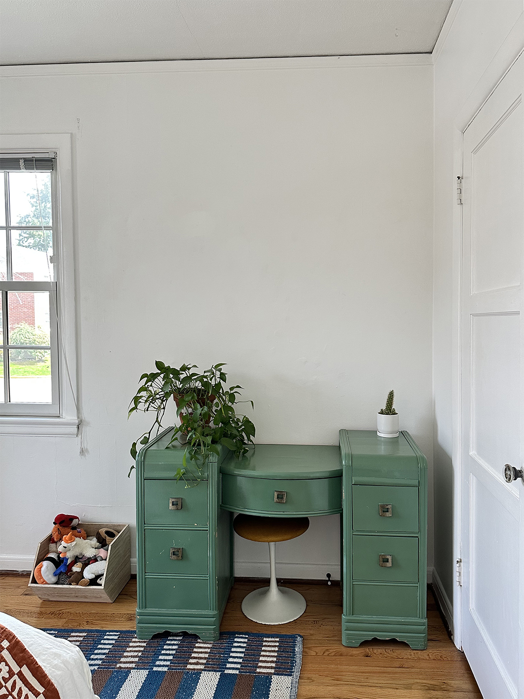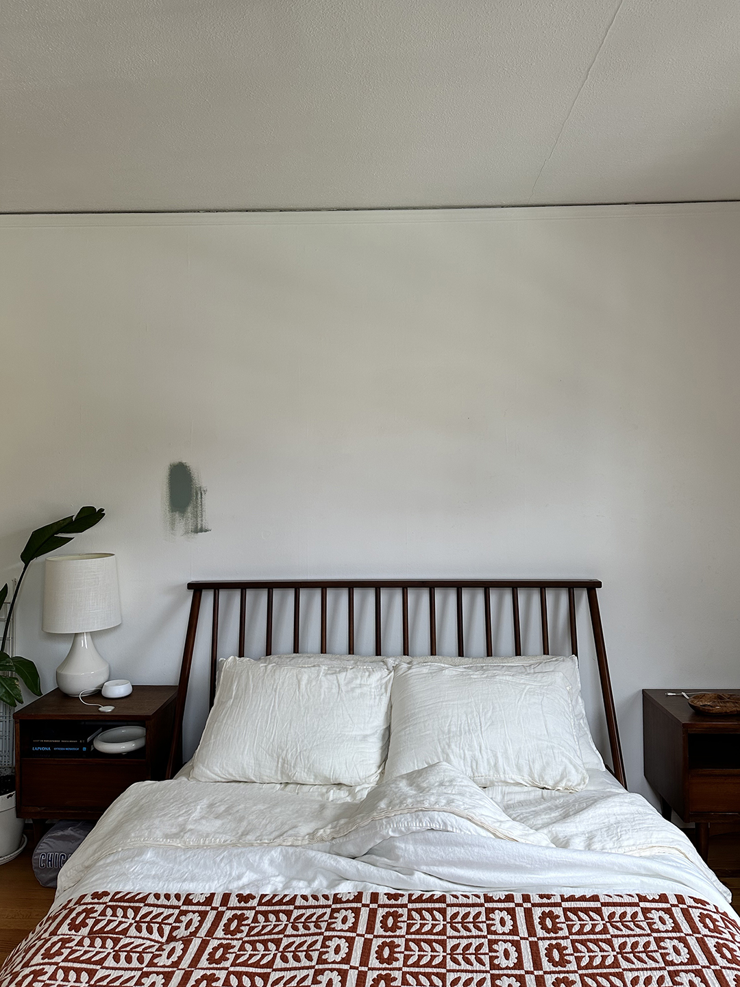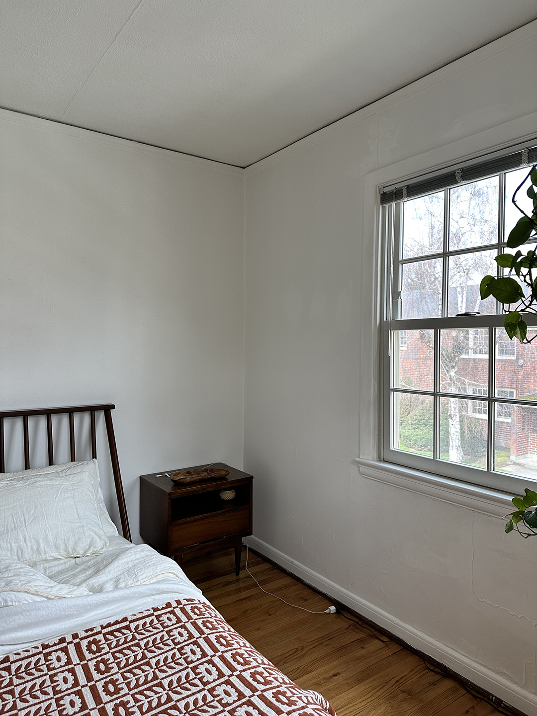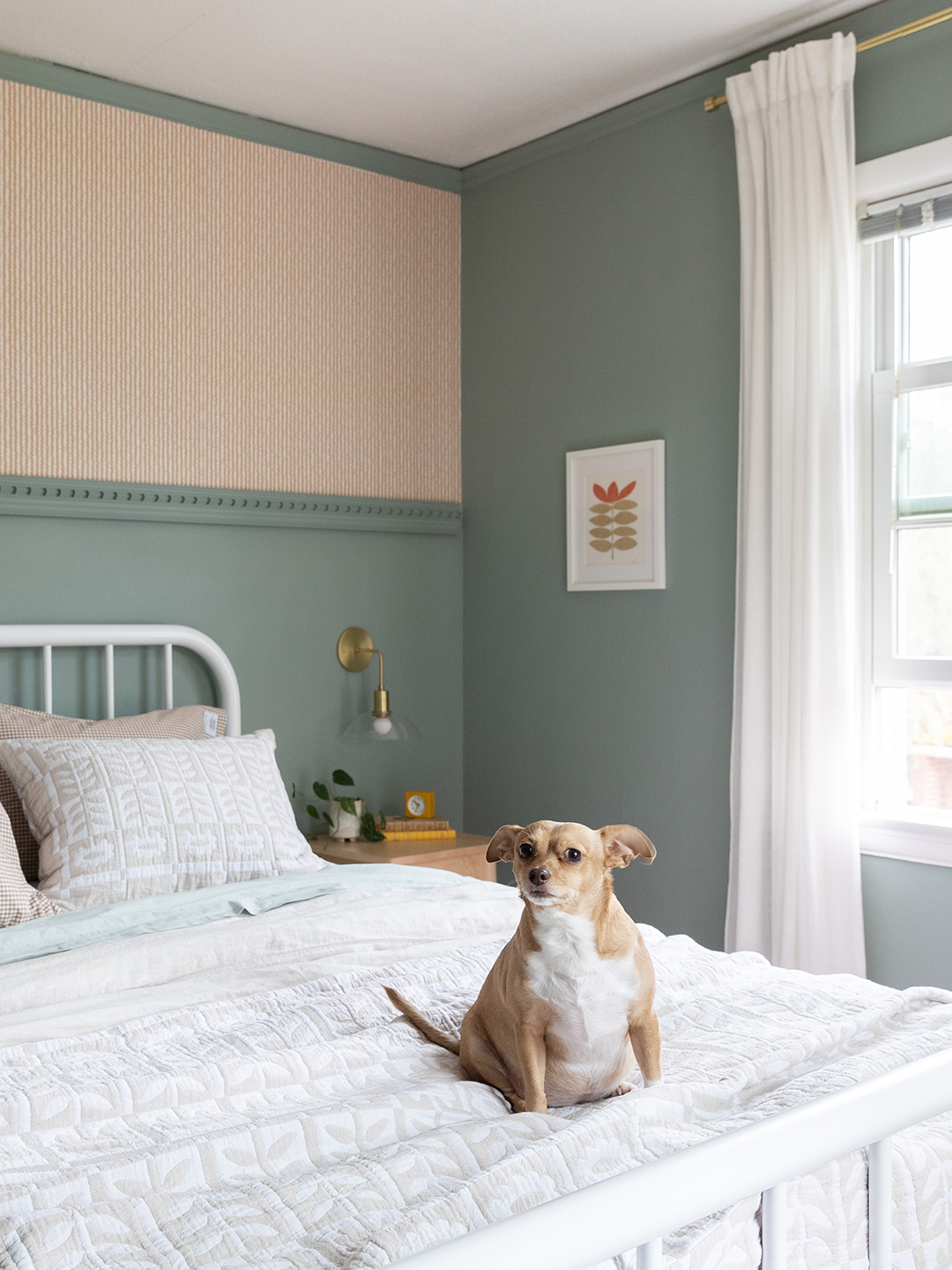 Top priority: Bring some color and sweet ’40s charm to a plain white rental bedroom.