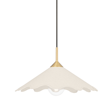 They painted the three shelves the same color as the walls to give the installation a bespoke feel and stocked them with baskets that share the shelves’ playful design. As one last tie-in, Gater replaced the existing overhead light with a Mitzi pendant lamp that seamlessly goes with the flow and can turn on with a switch with a scalloped plate. The results are decidedly cohesive, with a wink.