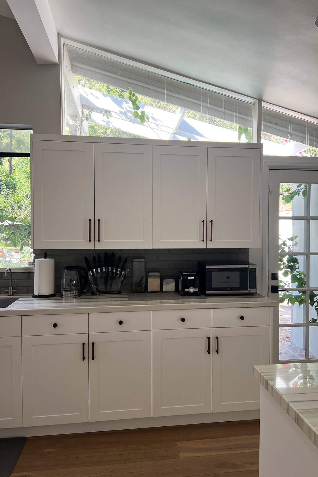 Cabinetry is designer Cynthia Abi-Naked’s love language. The founder of Los Angeles-based firm Anry Naked Interiors has spent most of her life around custom millwork. Her family runs A to Z Cabinets, which has made bespoke pieces for the likes of Jake Arnold, Night Palm, and Disc Interiors, with Abi-Naked still serving as managing designer. So when she’s tackling her own renovations for clients, you bet she’s going to go all out on clever storage. “For me, form follows function. It’s not just about what looks good,” says Abi-Naked. Her new Bel Air project is proof: there are now cubbies for storing board games next to the breakfast banquette, a hidden hamper in the bathroom vanity, and—an absolute must—a trash pull-out in the kitchen.