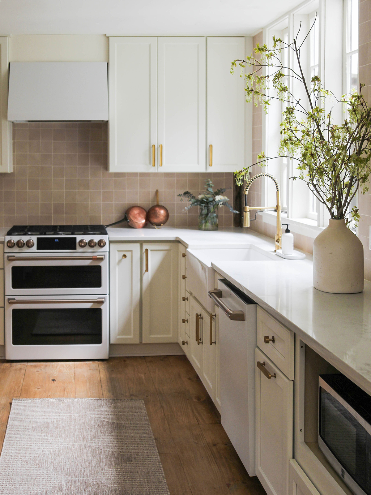 We almost doubled the size of the kitchen, but we did some things to lower costs, like keeping the sink and stove in the same locations. We ended up using stock cabinets from a local showroom and going with really nice hardware to elevate it a bit. We still envision being able to come here with extended family over the holidays, so our appliances were important to us. The nice thing about having such a long lead time on this project was being able to shop Black Friday sales.