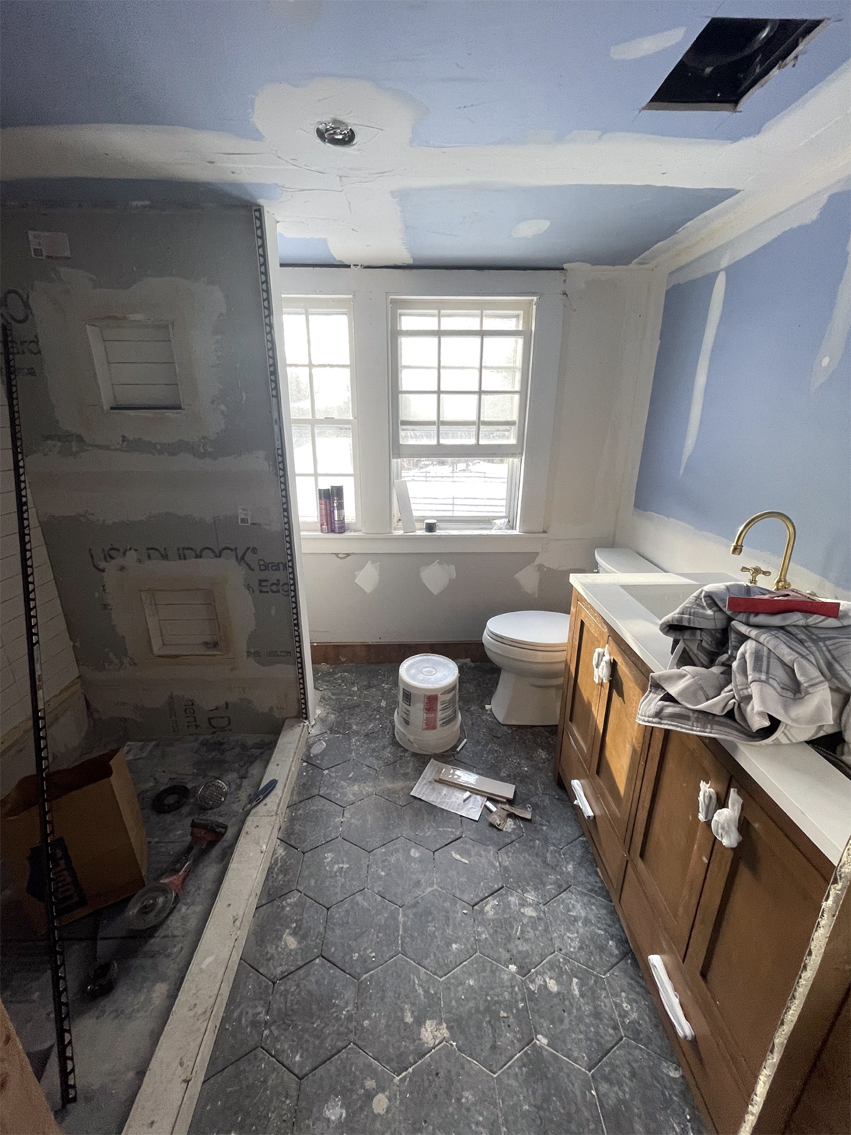 There was one whole side of the house where we tried to do just cosmetic work. And so on that side, we didn’t add any lighting—the switches are all tied to an outlet, meaning we had to do wall-mount, plug-in sconces. I don’t think people really mind walking around and flipping on a couple of extra lights, because they’re like, “This is a charming, unique, old house.” Some of that comes with it.