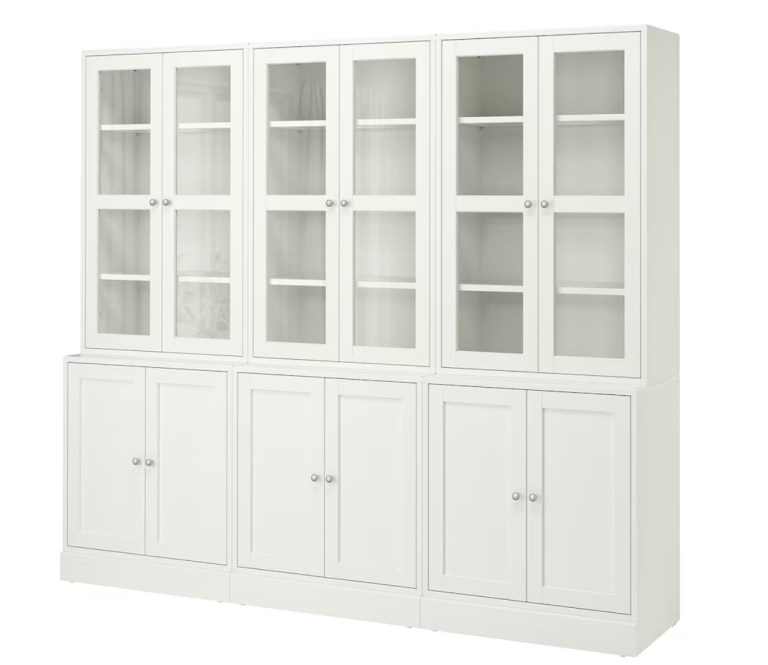 Billy bookcase who? DIYer Valeria Jacobs bought the Havsta cabinets and lined the interior with paintable beadboard wallpaper (now swathed in Oval Room Blue by Farrow & Ball) and dipped the exterior in London Clay.