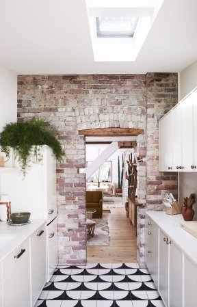 The engineered hardwood flooring came in at—wait for it!—$200. It was luck, really, that their local shop was having a sidewalk sale: They were able to scoop up hundreds of square feet of flooring for practically nothing. A save like this left room in the budget for the splurge-worthy Heath backsplash tile (20 square feet cost $525). “We wanted to bring a little bit of warmth in, given it’s a bungalow,” shares Sam.