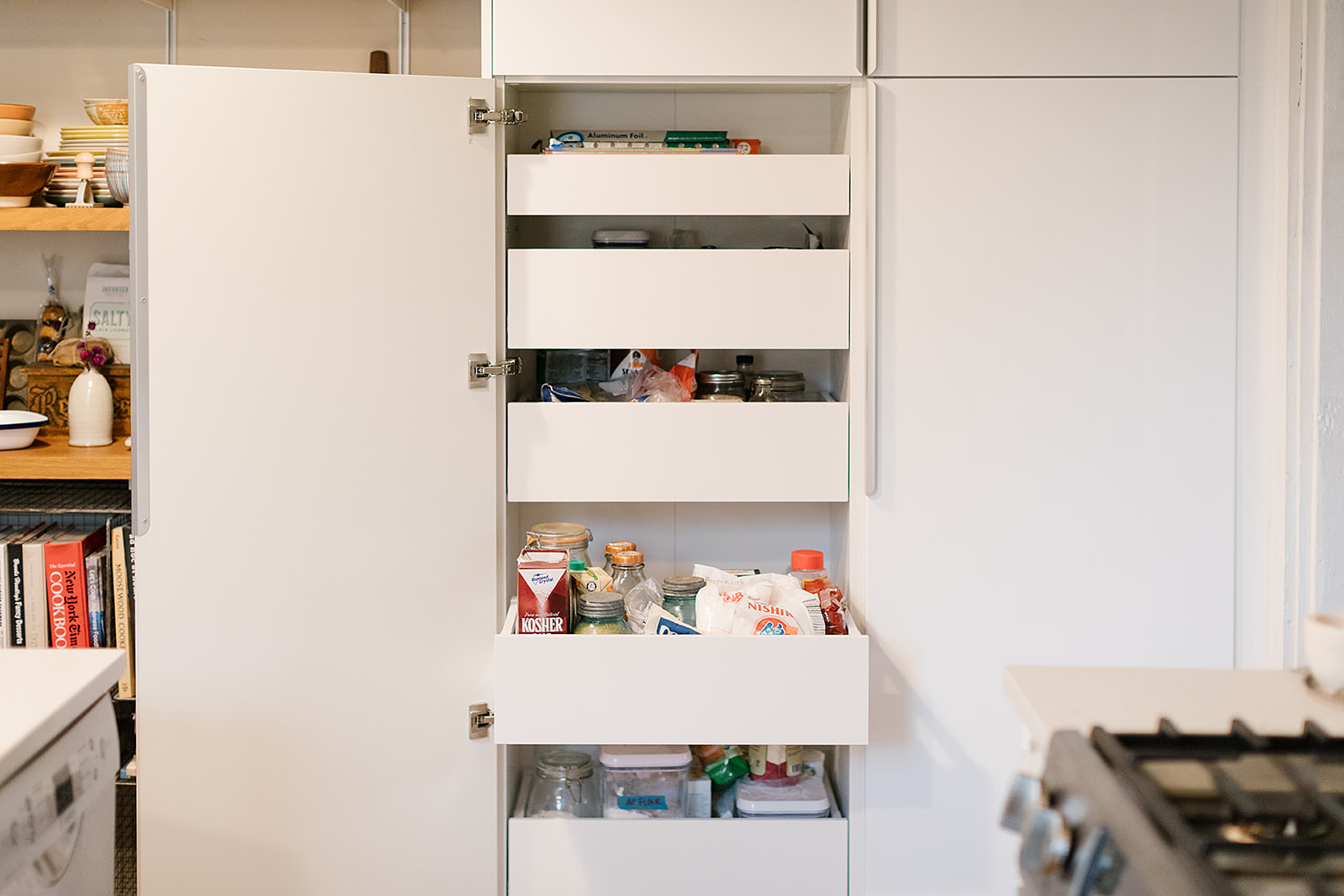 Storage was paramount for the couple: they love to entertain, plus Sam was working for Food52 at the time, so she was constantly testing new recipes and gadgets. Not having to stress over labor costs freed up the budget for most of their must-have items. Ahead, she takes us behind the scenes of her clever kitchen renovation.