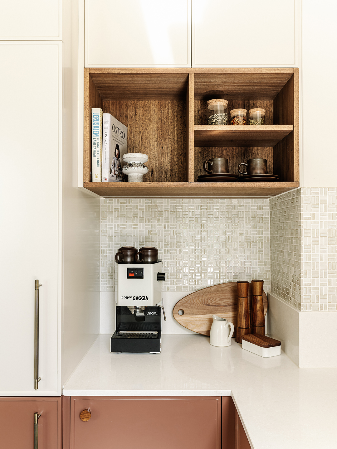 Some renovations find their inspiration through a broad, rolling process of discovery, but for one Melbourne kitchen, interior designer Megan Norgate says the design was clear from the moment she received the address. Her clients had bought an apartment in a celebrated Art Deco apartment building by architect Arthur Plaisted. “The architecture had beautiful proportions and a lot of lovely features, including very careful placement of windows for light and views structured around internal courtyards,” says Norgate, who immediately pictured how the Art Deco style could be translated into a contemporary setting. Think clean 1930s lines, simple ornamentation, and lots of soft curves.