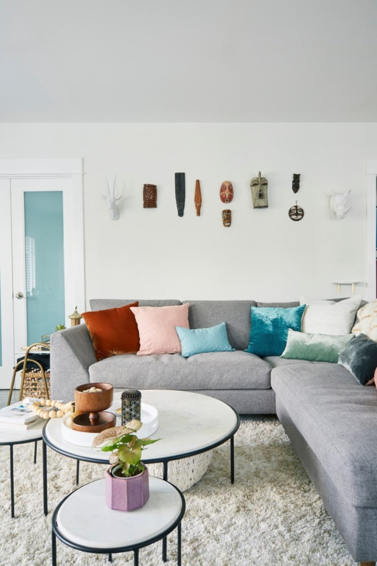 While the round skylight in the entryway looks like it’s been there all along, it was a brand-new addition that was meant to help soften up all the 90 degree angles in the house. Rudolph and Kutner almost always opt for custom front doors, so they used it as a chance to continue the round motif there, too. “One thing they’re good at is creating a house that unravels,” shares Sam. “The entryway is stunning in itself, but then there are so many wow moments after that.”