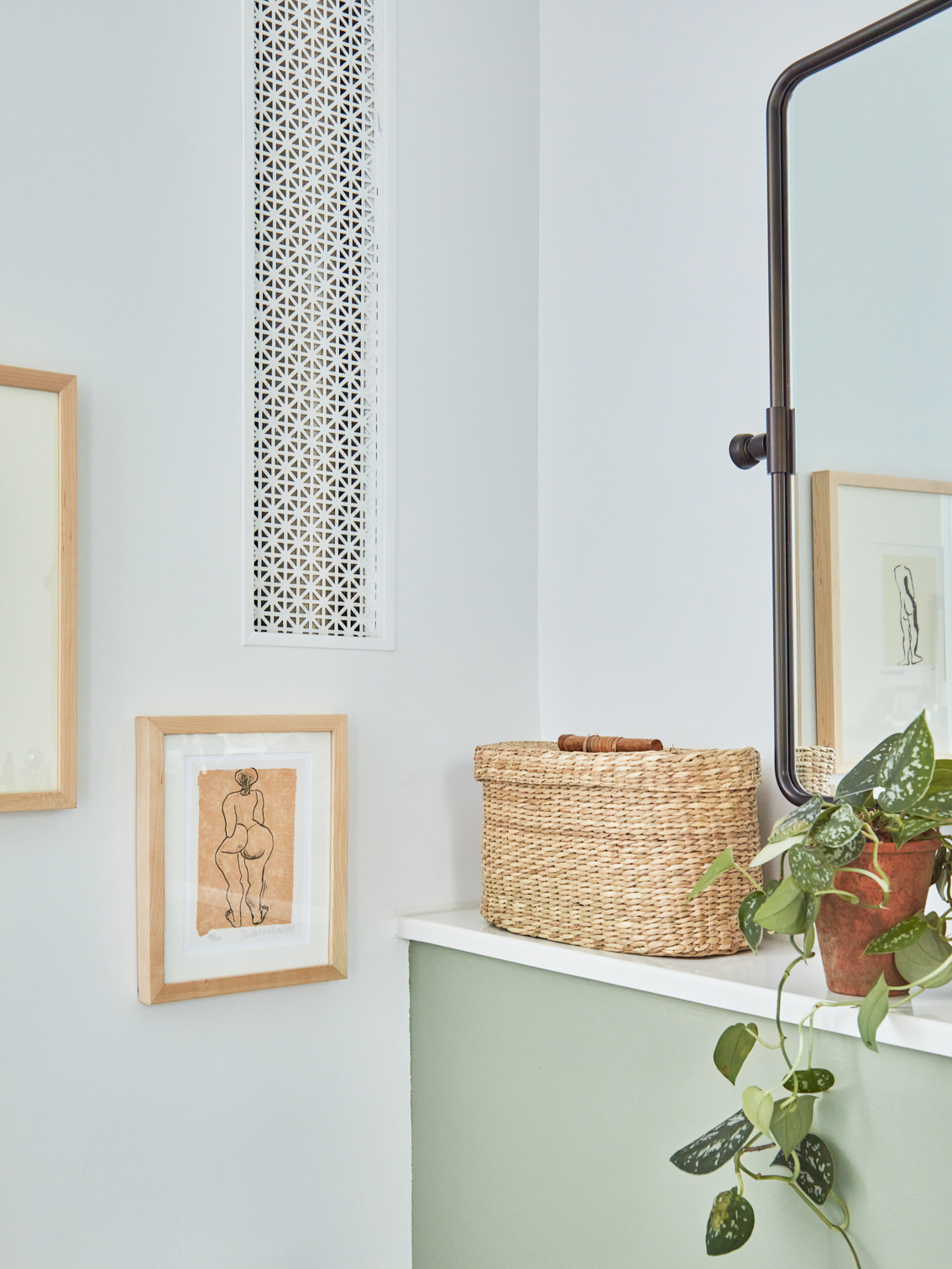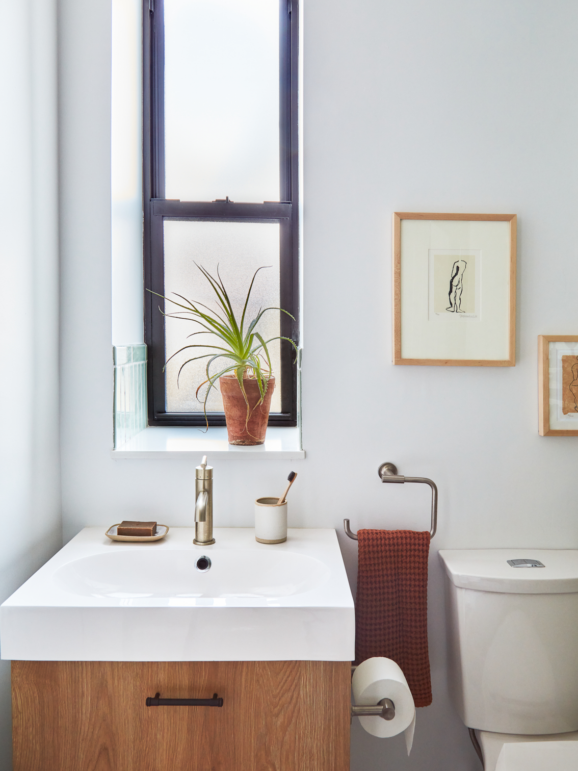 New York–based editor Arati Menon never got to experience the honeymoon phase when she and her husband purchased their Prospect Heights, Brooklyn, apartment at the beginning of 2020. You know, that butterflies-in-your-stomach feeling you get when you move to a new neighborhood and discover all the cute restaurants and the 24-hour bodega. “We didn’t have any of that,” recalls Menon. “All we had was this apartment and issues swirling around us.” It wasn’t until the world started slowly opening back up the following year that she was able to wrap her head around settling in. The first space she aimed to put her stamp on? Their en suite bathroom. “The bedroom is such a sanctuary for me, so it was a nice place to start,” she shares.