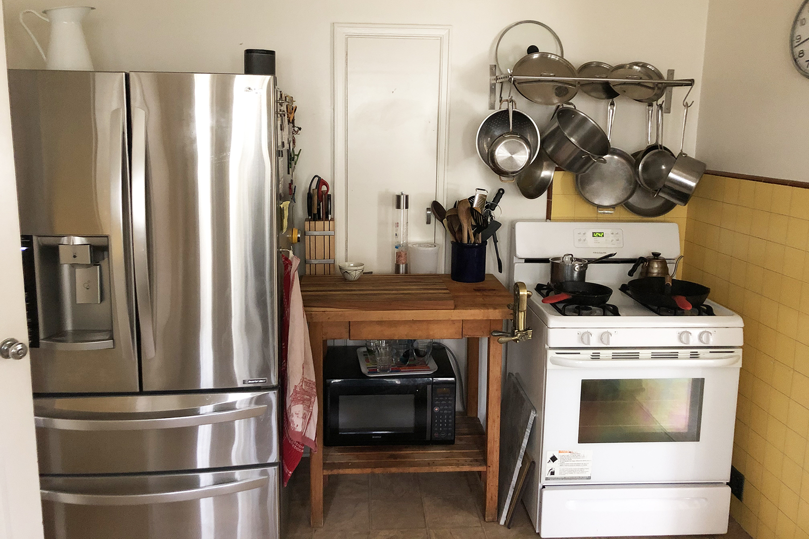 After interviewing architects who wanted to transform the kitchen by knocking down walls, the couple hired Dunbar, who promised not to touch a sledgehammer. With Butler’s penchant for cooking and Posatko’s affinity for baking in mind, she set about creating a floor plan where they could accomplish these tasks simultaneously. “Providing enough storage while making the space feel more open was another issue,” she explains.
