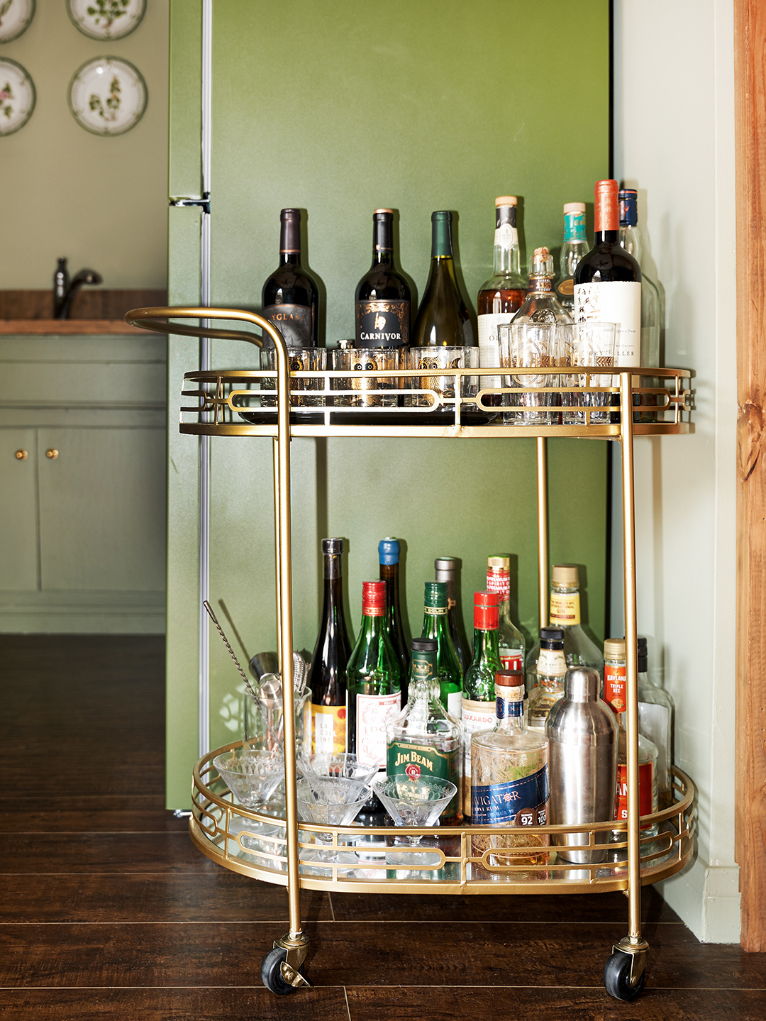 Thomas got acquainted with contact paper while working on shoots where kitchen countertops needed to be tweaked in a flash. “You just fake it out,” she says. Wappel’s granite worktop wasn’t quite feeling Hobbit-worthy. Thomas combed through Amazon for butcher block–looking alternatives. “Honestly, I went off my gut. I was like, which one seems the least bad?” she says with a laugh. She was impressed when the option she chose showed up. Because the product has an embossed texture to it, it sells the look of real wood grain—at least from far away. “It doesn’t look like paper with wood printed on top,” she says.