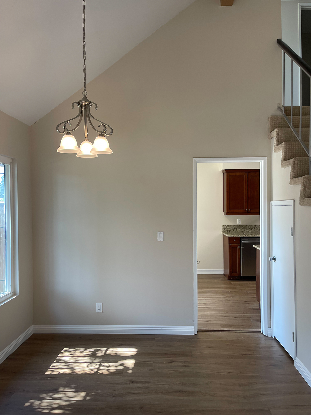 After becoming a mom and nursing for years, and also falling in love with cooking, I knew I needed more storage, so I kept all of our uppers and added more lowers this time around. I opted for in-stock unfinished cabinets from Home Depot. I’ve used these before and quite like them. Installing the additional lower cabinet units myself felt really good, especially when the countertop installers came in and complimented my work (I told them it was my first time and they couldn’t believe it!). I store the trash can in the cabinet closest to the patio, and plates, cups, pans, and cooking utensils in the other cabinets.