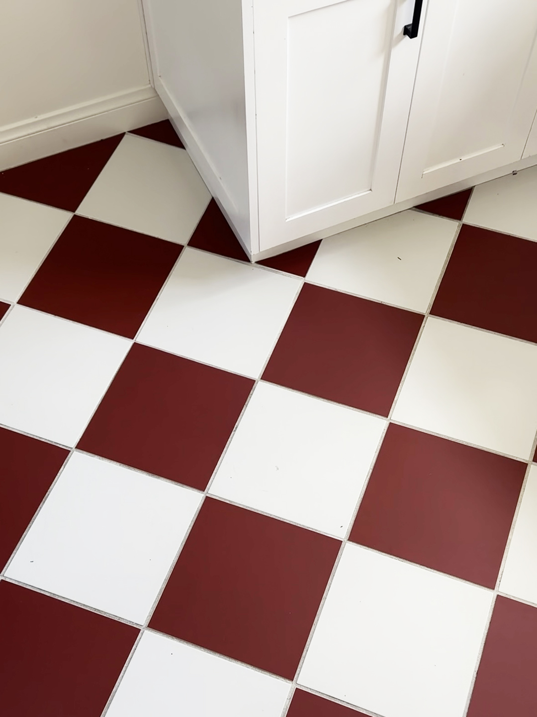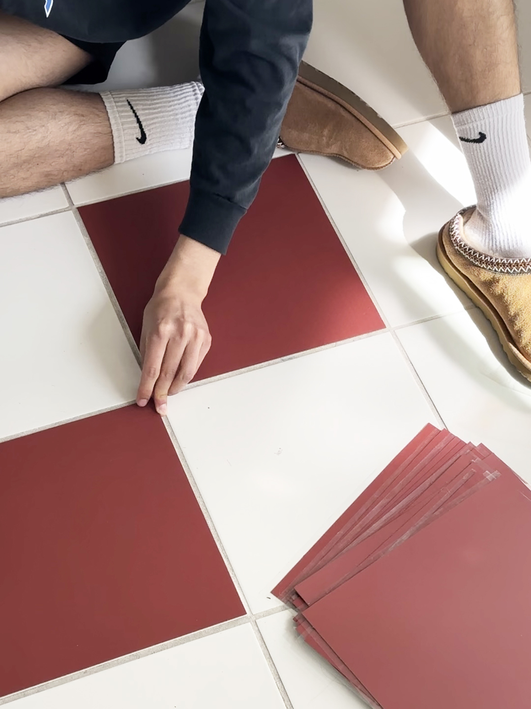 One surefire way to add character to a space is with color. Zamora bought a pack of red and white peel-and-stick floor tiles on Amazon for $22, despite the product having very few reviews at the time. “I thought, let’s take a risk. At least there is a good return policy,” he says with a laugh. Once they arrived, he realized he didn’t even need to use the white squares in the box (his flooring is already made up of actual white tiles). Instead, Zamora laid the red stickers down in a checkerboard fashion, trimming the sides with an X-acto knife to expose the grout lines for a more realistic look. “I’m surprised, but they’ve been holding up great,” he says.
