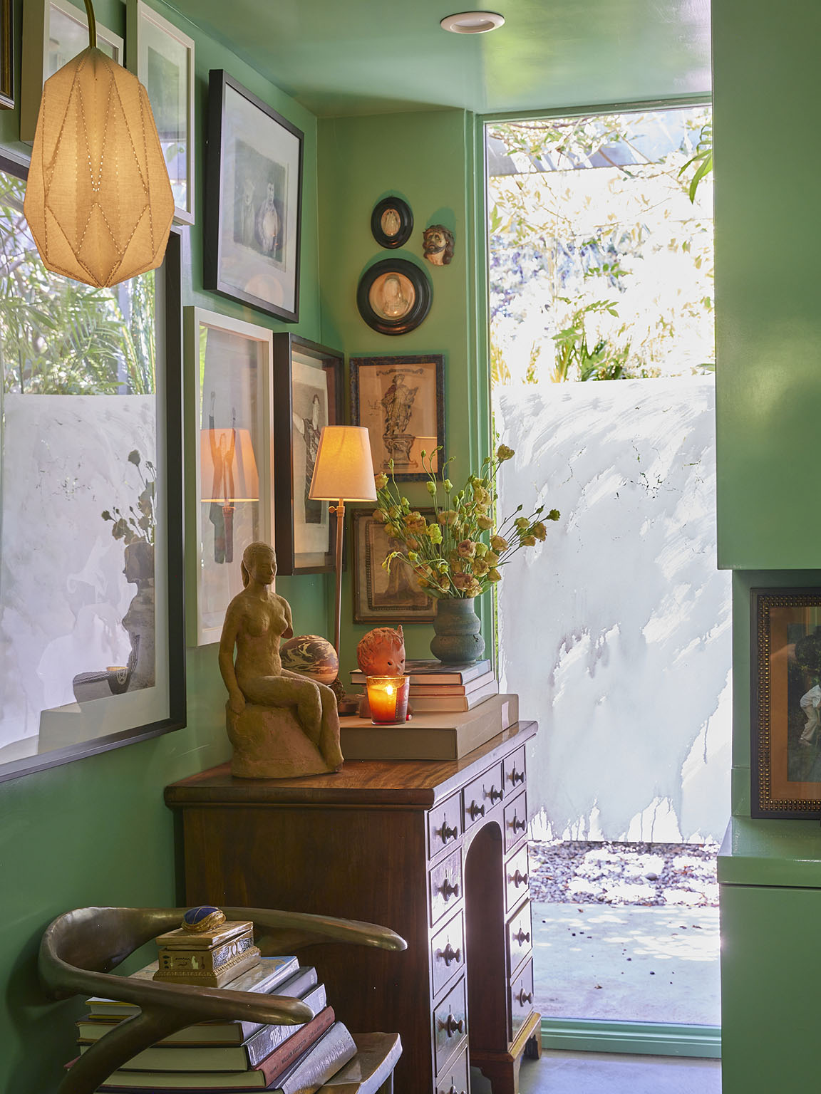 More than a decade ago, Emily Ward—half of the design duo Pierce & Ward—and her partner, actor Giovanni Ribisi, purchased Japanese ceramic artist Mineo Mizuno’s mid-century gem in the Atwater Village neighborhood of Los Angeles. But they wouldn’t live there; the two-bedroom house, complete with a kiln and gallery space, would serve as a particularly epic office and studio for Ribisi. That is, until last year. Eager to downsize, Ward made the case for turning it into a retreat for them and their twins, Maude and Enzo. “It’s such an interesting juxtaposition to the way that Louisa [Pierce] lives and the way that I used to live,” Ward says; their Marin County home has a main house, bunkhouse, and guesthouse. “For some reason, it’s more inspiring to me not to have so much stuff and all of those extra rooms.”