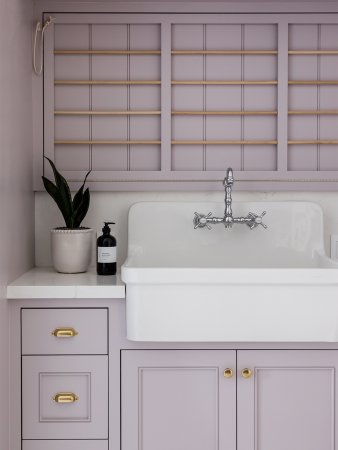 Wanting to avoid the clinical design trap that so many new bathroom renovations fall into, Kilroy focused on adding pieces with age and character, like an enormous claw-foot cast-iron tub, an eBay score. The designer refurbished the piece herself with Zinsser BIN primer and, once that was dry, two coats of satin paint. Connecting the fixture to a water source turned out to be the trickier part. The taps that had come with the tub were leaky and beyond repair. Kilroy found herself buying a floor-standing filler that she hadn’t initially budgeted for. No regrets: “We’re so happy we have our own bathtub and have taken more baths in the past few months than in the past few years,” she shares.