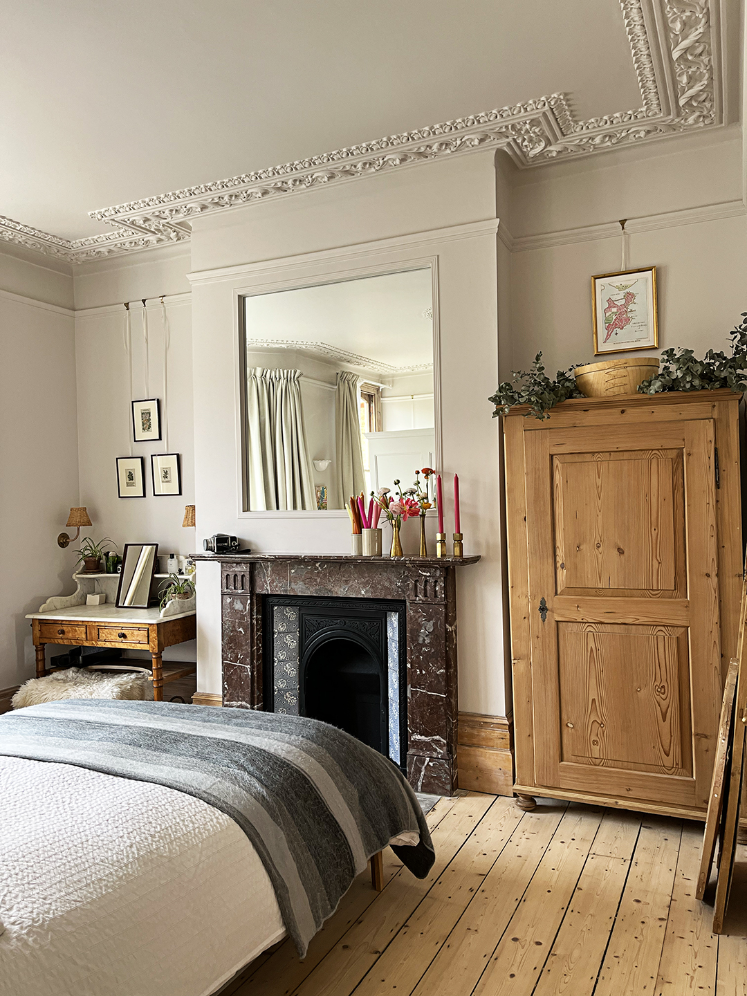 You’d never know looking at Leanne Kilroy’s bedroom and bath now, but at one point during her remodel, there were gaps in the shower floor tile, a permanent marker stain on the dresser’s marble countertop, and an irremediable leak coming from the tub spout. That’s the thing about renovating: Sometimes you have to go through all the painful mistakes to get to the right place. “It was actually a blessing in disguise when the original penny tiles I had purchased for the shower were laid incorrectly and had to be ripped out,” says Kilroy, the interior designer and founder of London-based firm Good Bones. Having the opportunity to see them in the space, wonky-looking and all, inspired her to switch gears altogether and purchase the green tumbled marble tile she’d secretly wanted all along. “And I really, truly love it,” she adds.