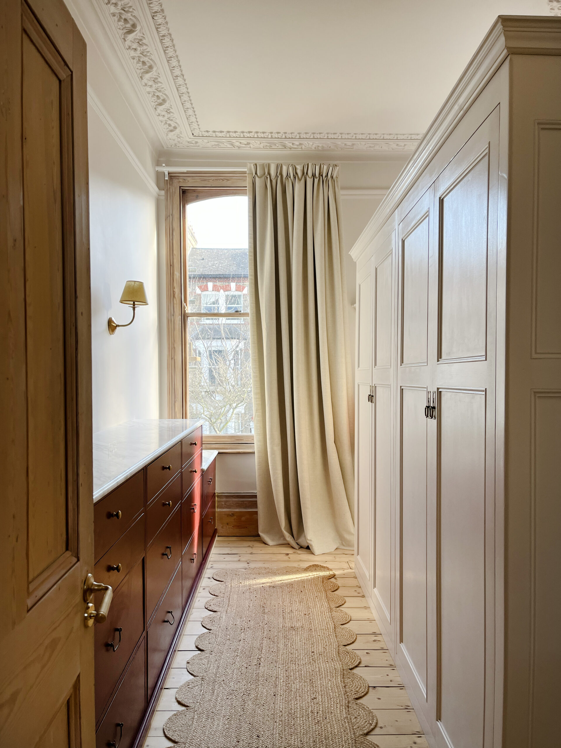 She’d been set on creating an en suite since she and her family moved into the house in November 2020. The space adjacent to the primary bedroom was essentially a smaller replica of it: It had the same orange floor varnish, broken ceiling spotlights, and bulky MDF cupboards. After relocating their youngest child to a different room upstairs, where she could be closer to her sister, Kilroy and her husband decided to join the two areas with a new door and designated the more petite room as the new bathroom. “It was the very first thing the builders did, and it was so satisfying,” recalls the designer. Ahead, a closer look at the three-month-long transformation, its trial and errors, and why it was all worth it in the end.
