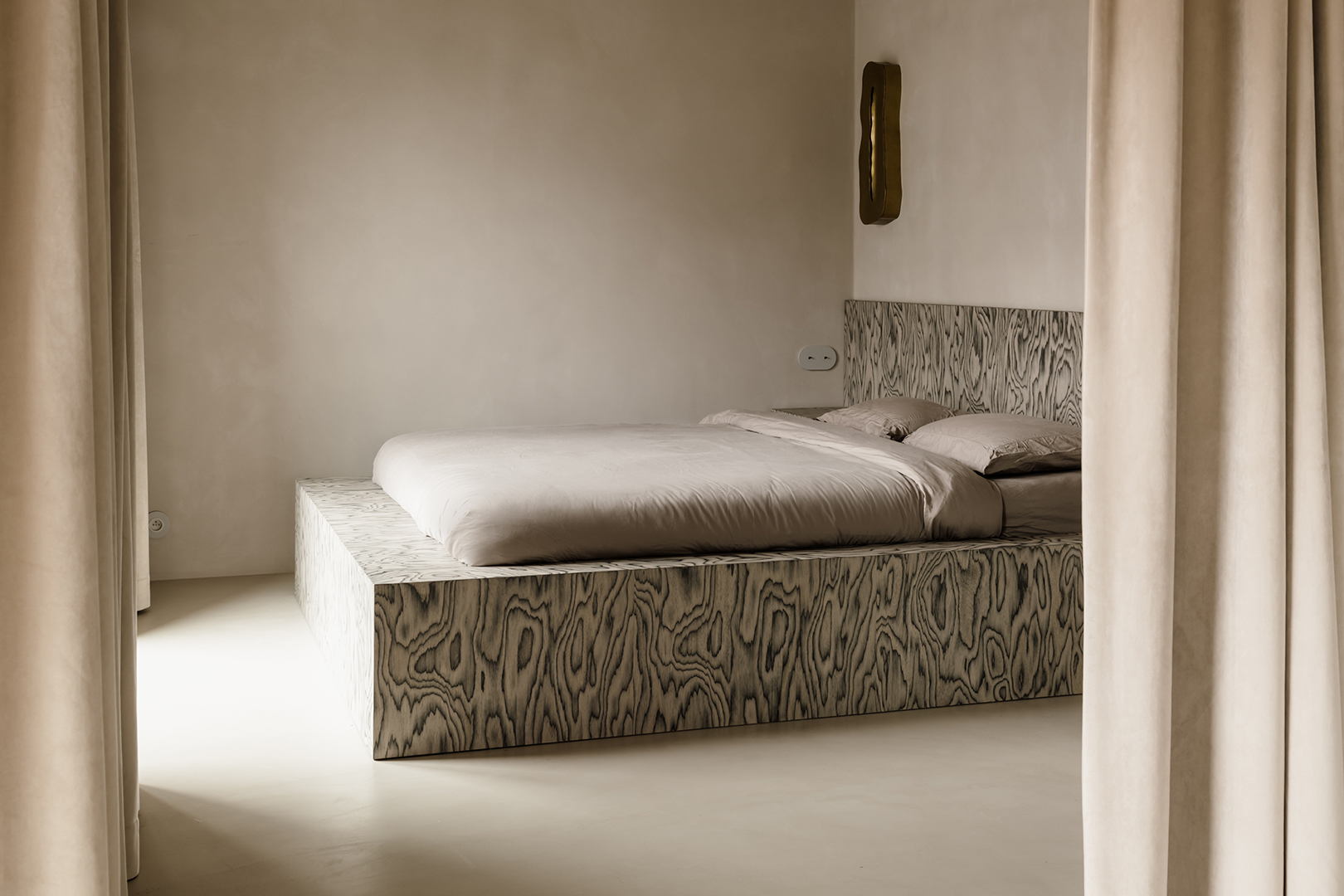 Another barrier to entry: The price is upon request, says Bianchi. We asked Konieczny, who used the Sottsass wood in the bedroom of a recent project, how it compares to, say, popular white oak, and his response had us triple-checking our bank accounts. “Sottsass veneer is like five times more expensive than simple white oak,” shares the designer. But for both Konieczny and Kwoczka, the steep price point has everything to do with the veneer’s originality and the designer behind its creation.