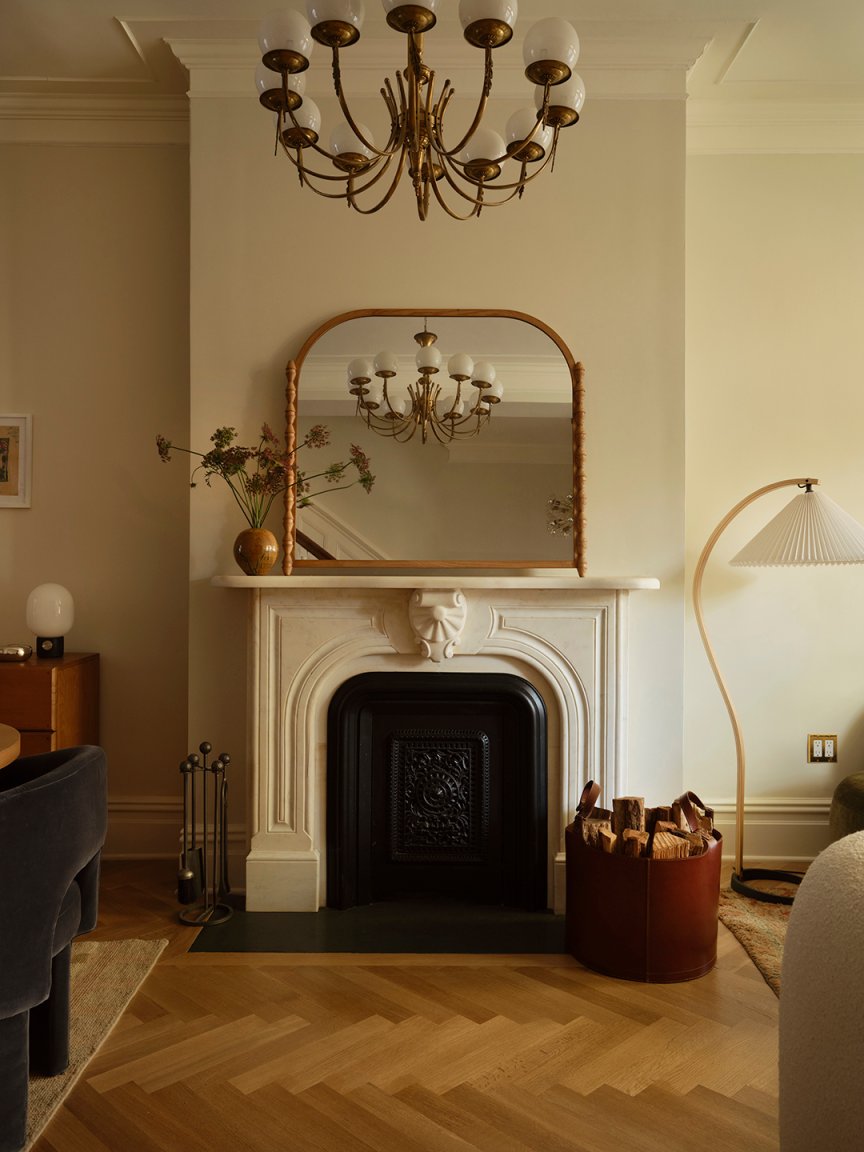 Historical homes are like time machines—that’s why Aubrey Ament and Will Glaser of Brooklyn-based design firm Glam Studio love them. “There’s this record of how people lived in these spaces across eras, and an architectural framing of those eras over time,” says Ament. “If you had multiple generations of one family living in a house for 100 years, you’d see time layering [through] all of those different styles.” So it was on the parlor floor of a 140-year-old brownstone in Brooklyn’s historic Clinton Hill neighborhood, which the design duo had been contracted to refresh while improving the flow of the spaces.