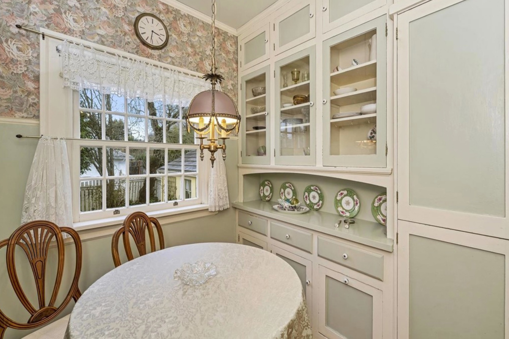 A young couple, who now have two children, purchased a 1920s house that looked straight out of a storybook, inside and out. The interior was a pastel time capsule adorned with delicate lace, intricate patterned wallpaper, and ornate trinkets. Right away, Bidgood could tell the home just fit its owners. “The wife’s demeanor is very soft and sweet, and I think it’s so important that the spaces that we design reflect the people we’re designing them for,” she says. Bidgood wanted to maintain the sense of coziness and timelessness while also making the space functional for their growing family.